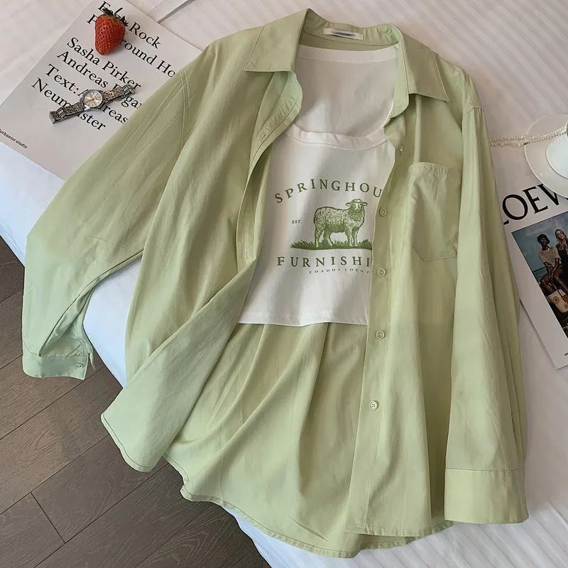 | nameOriginal | Lazy Style Green Shirt Top Women's Spring and Autumn Korean-style Loose Outer Cardigan All-match Thin Sun-protective Jacket for Summer |