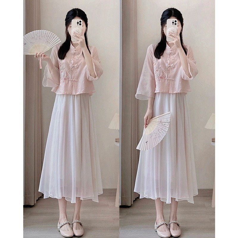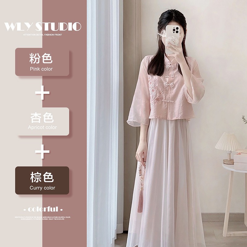| nameOriginal | Summer New Chinese Style Improved Cheongsam Young Women's Clothing Small Guofeng Tea Clothing Two-piece Dress Dress for Women |