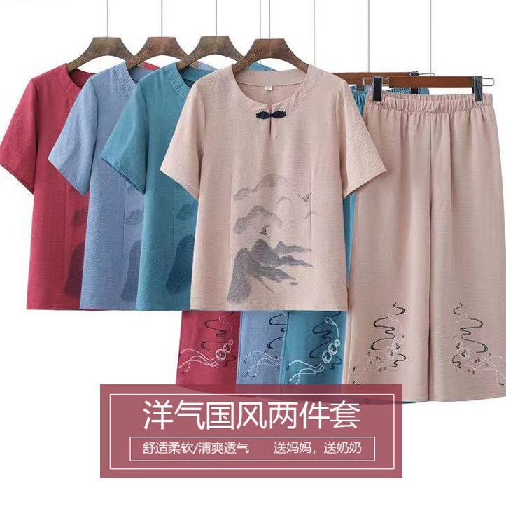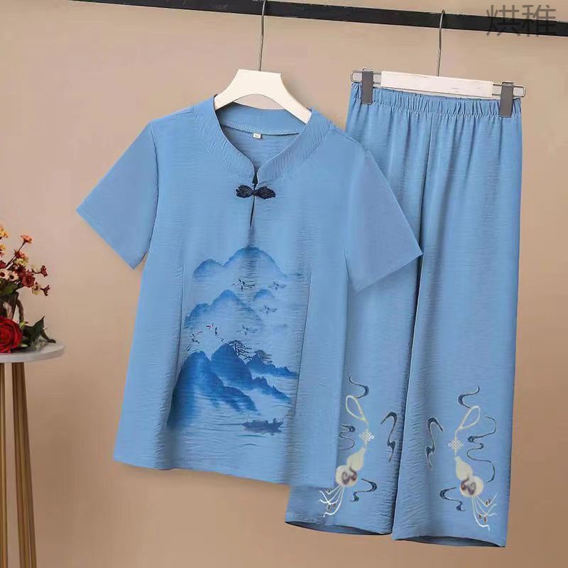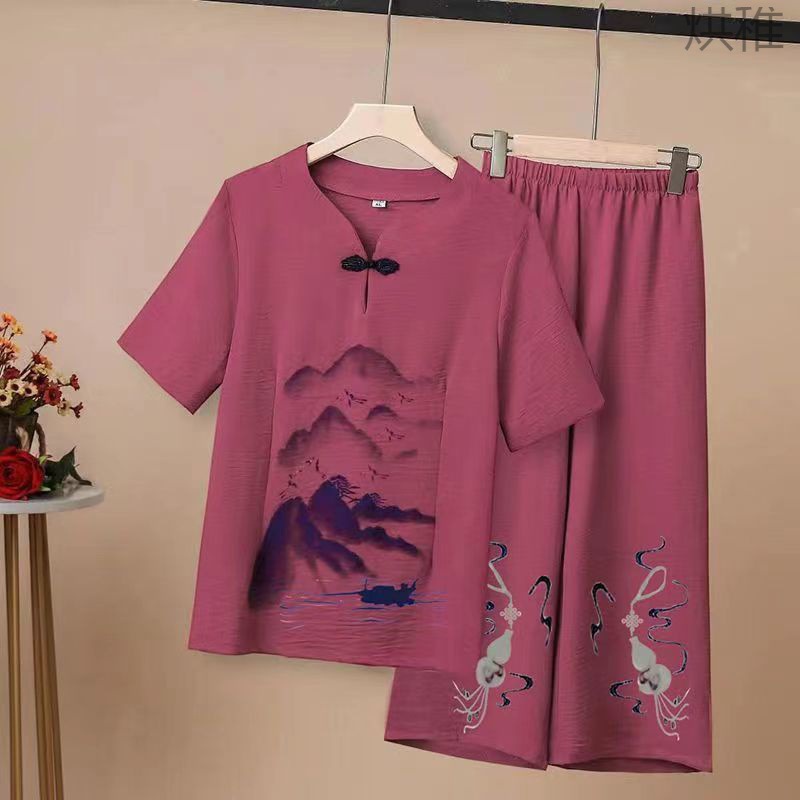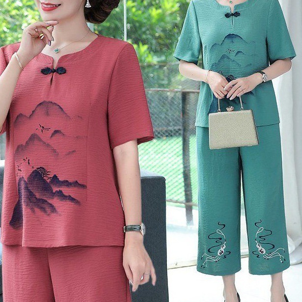 | nameOriginal | X -3 Mother's Summer Tang Dress suit Loose Western Style Short Sleeve Age-reducing Two-piece Set for Middle-aged and Elderly plus size |