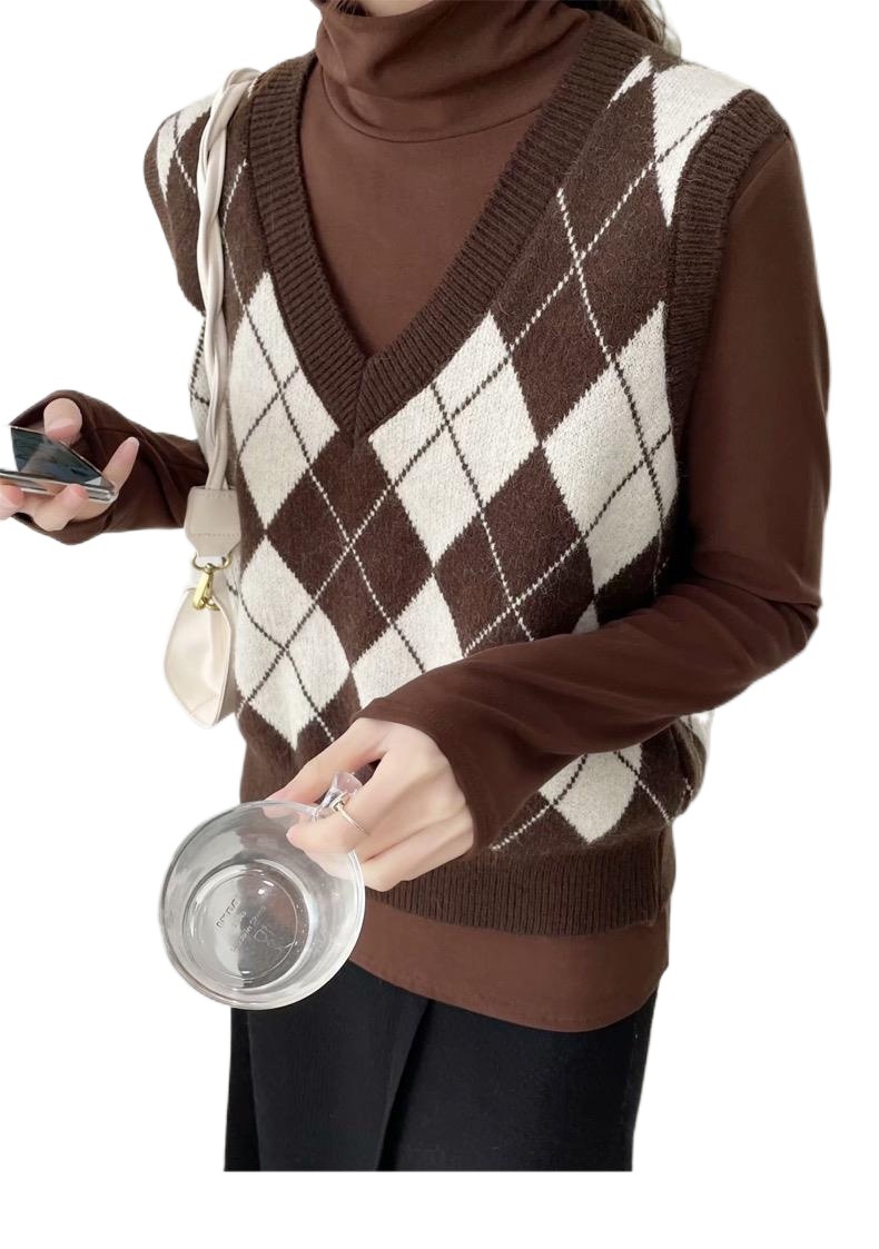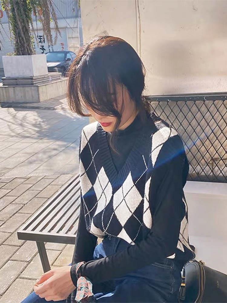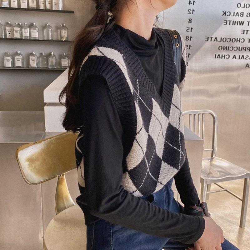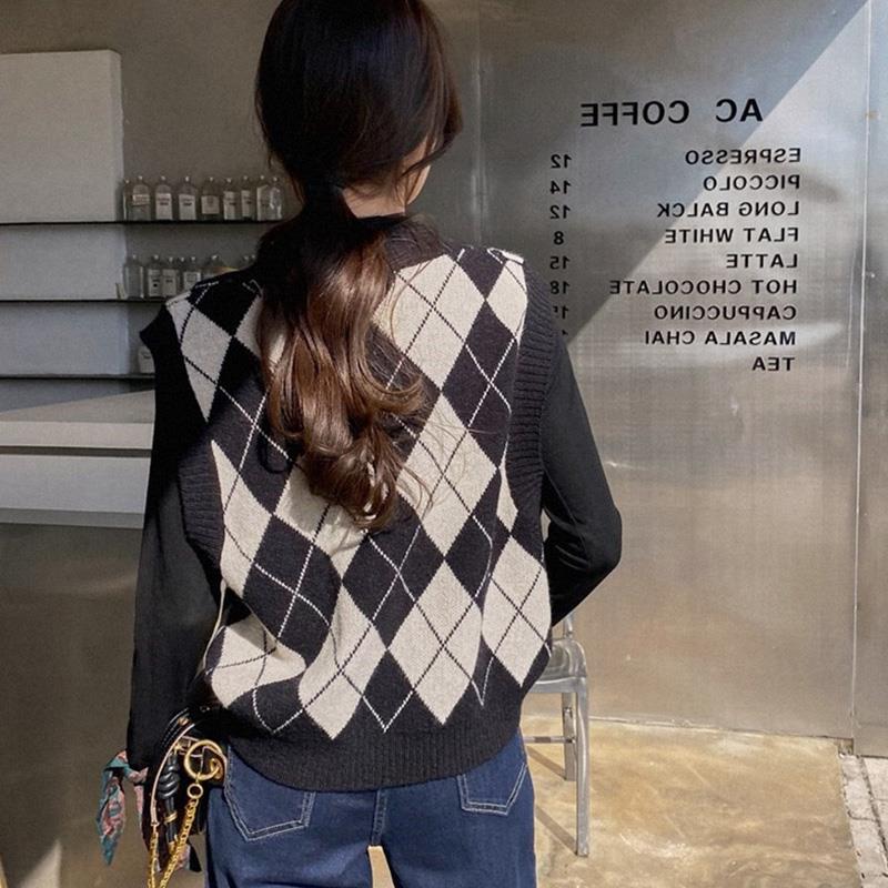 | nameOriginal | T-Rhombic Knitted Vest Women's Outer Wear Retro Waistcoat V-Neck Korean Style Rhomboid Sweater Vest Early Autumn Top |