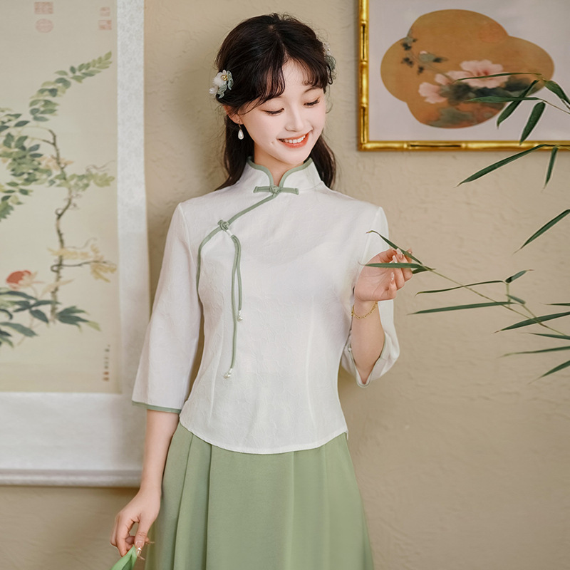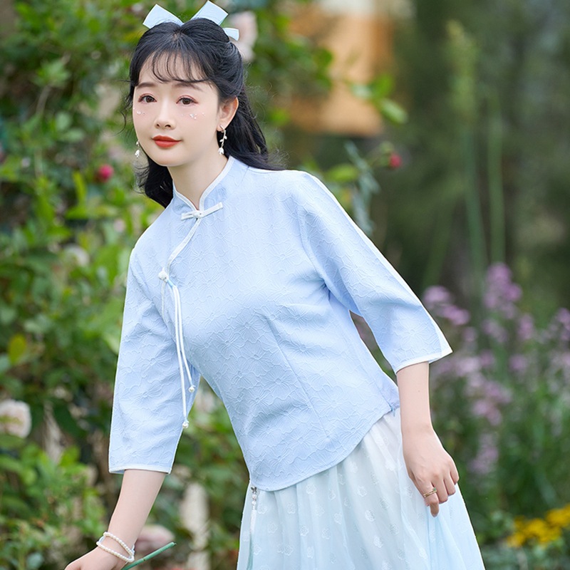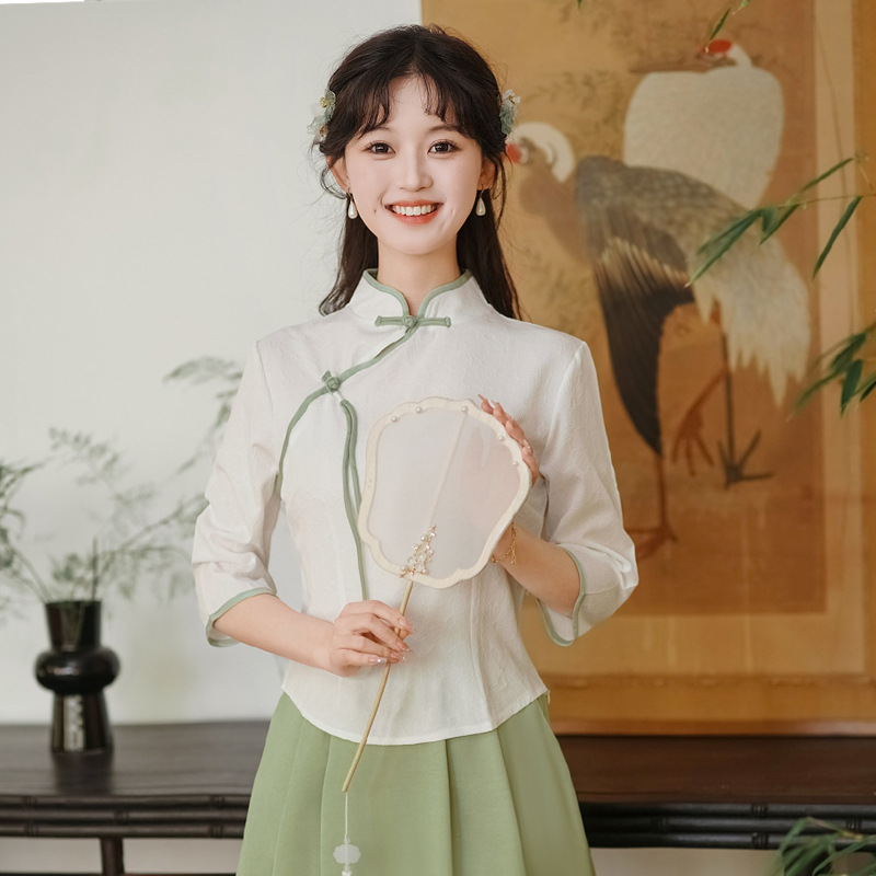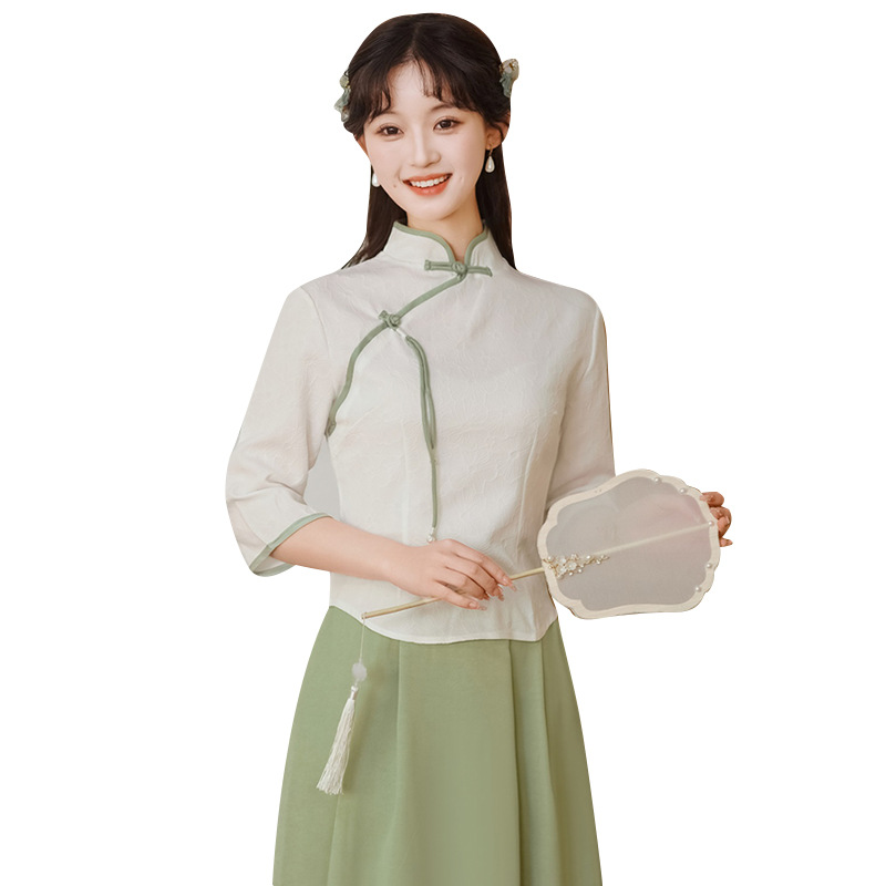 | nameOriginal | 2024 spring and summer new Republic of China style elegant women's clothing Chinese retro stand collar jacquard Tang suit top Zen tea suit suit |