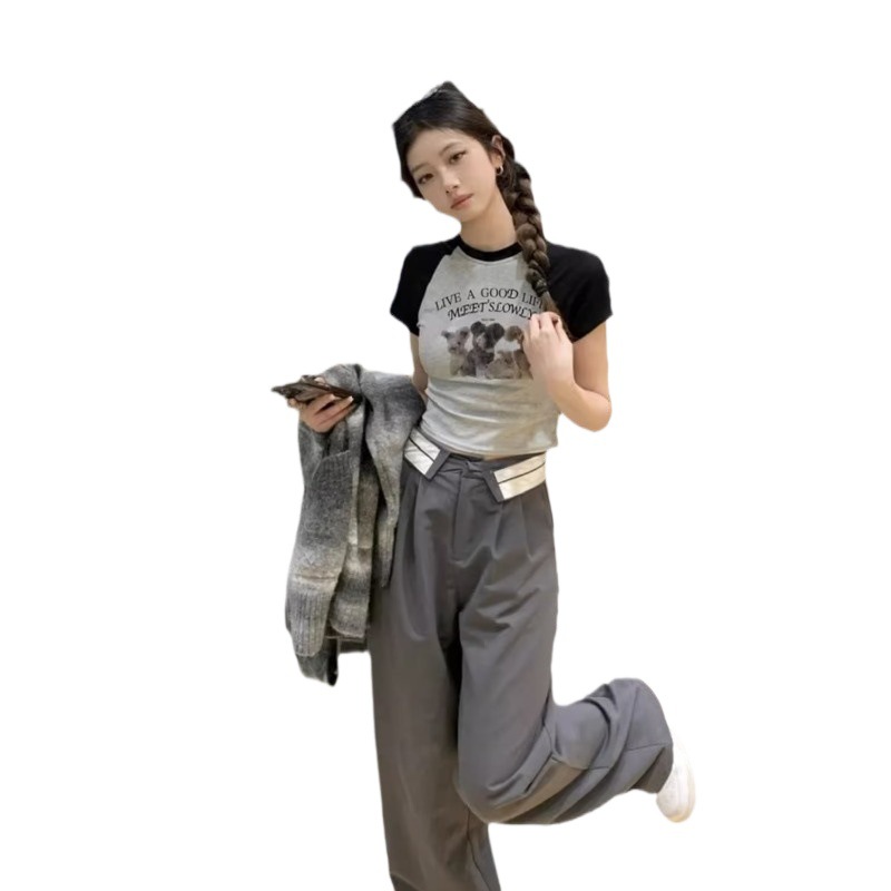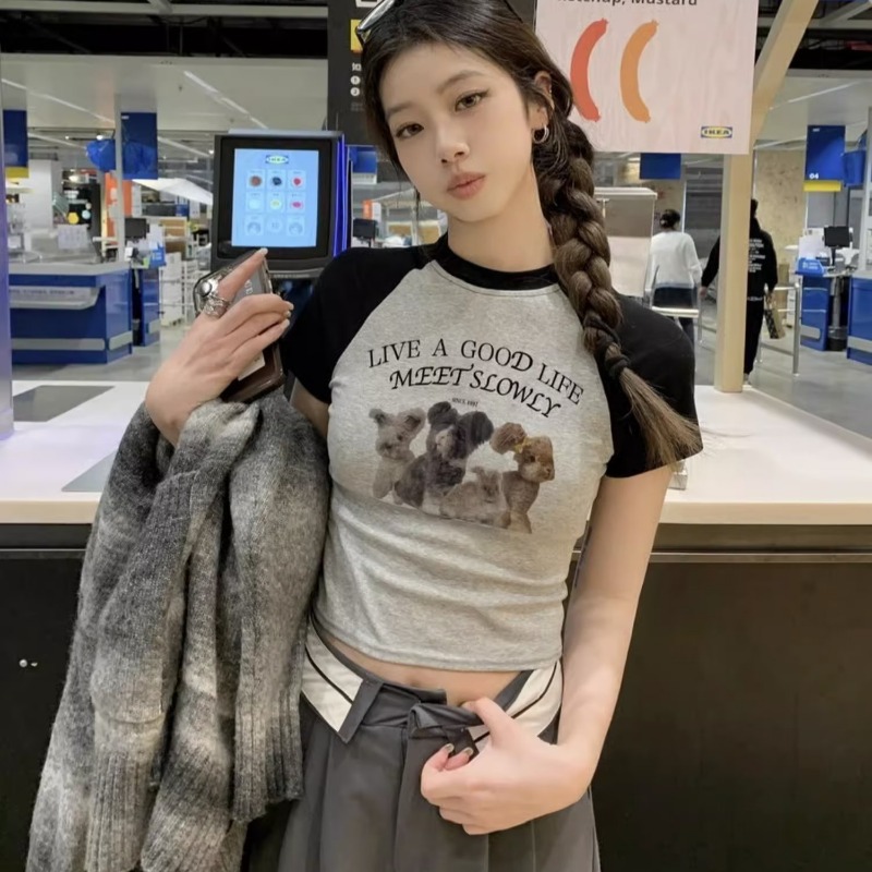 | nameOriginal | American Style Puppy Raglan Sleeve T-shirt Women's Summer New Tight Retro Spice Girl Short Slim-fit Slimming Short-sleeved Top |