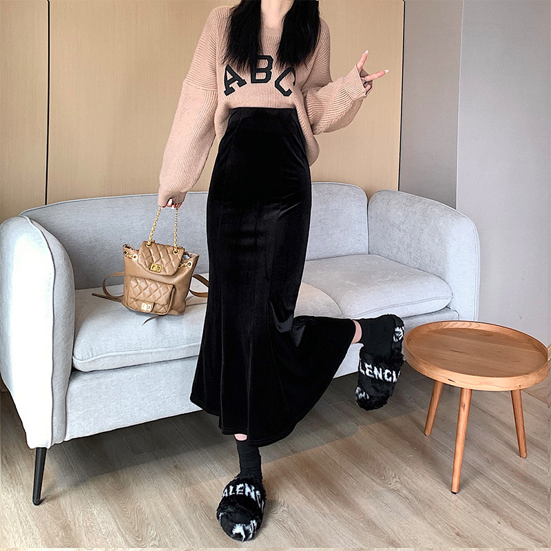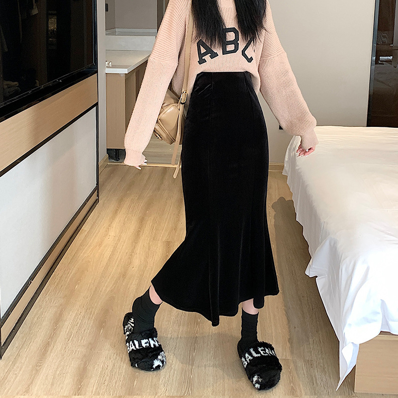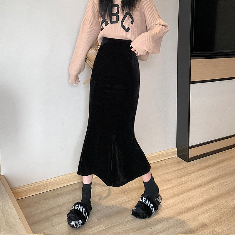 | nameOriginal | Gold Velvet Half-length Dress 2023 Women's Autumn and Winter New Velvet Dress Women's Mid-length Black A- line Velvet Dress |