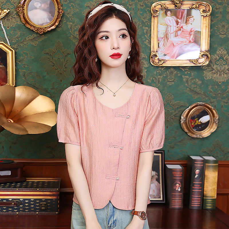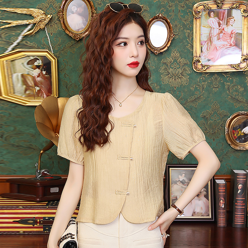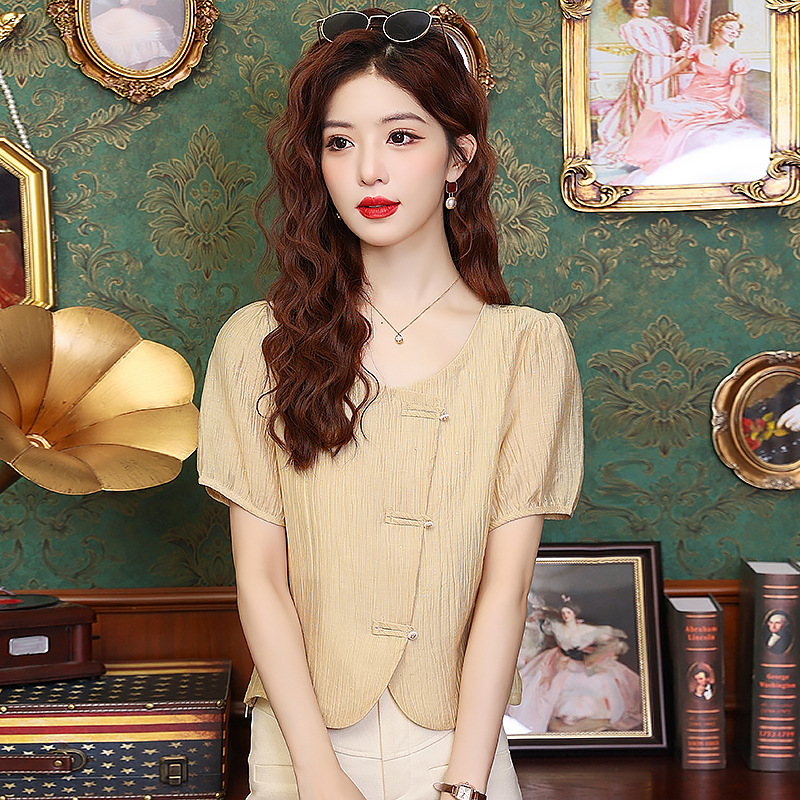 | nameOriginal | 2024 Summer New Style National Style Fashion Inner Base Shirt Outer Wear Small Shirt Age-reducing Slim Shirt Top |