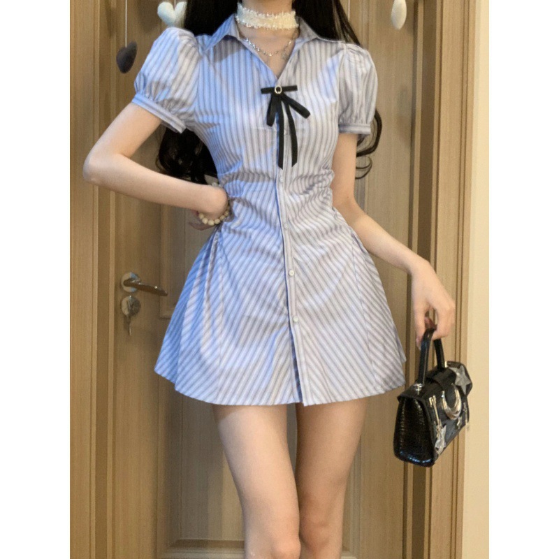 | nameOriginal | Fashionable Two-piece Set Summer French Style College Style Bow Puff Sleeve Polo Collar Shirt Dress Women's Shorts Two-piece Set |