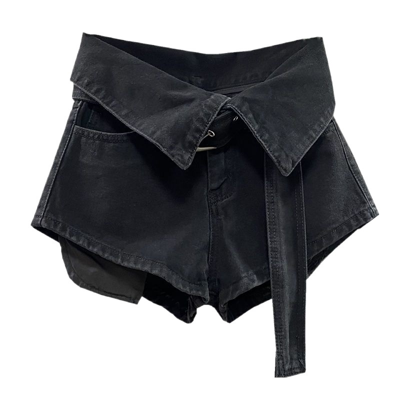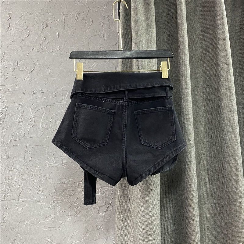 | nameOriginal | 2024 new spring and summer net red flanging design irregular high waist black Denim shorts women's wide leg A- shaped hot pants |