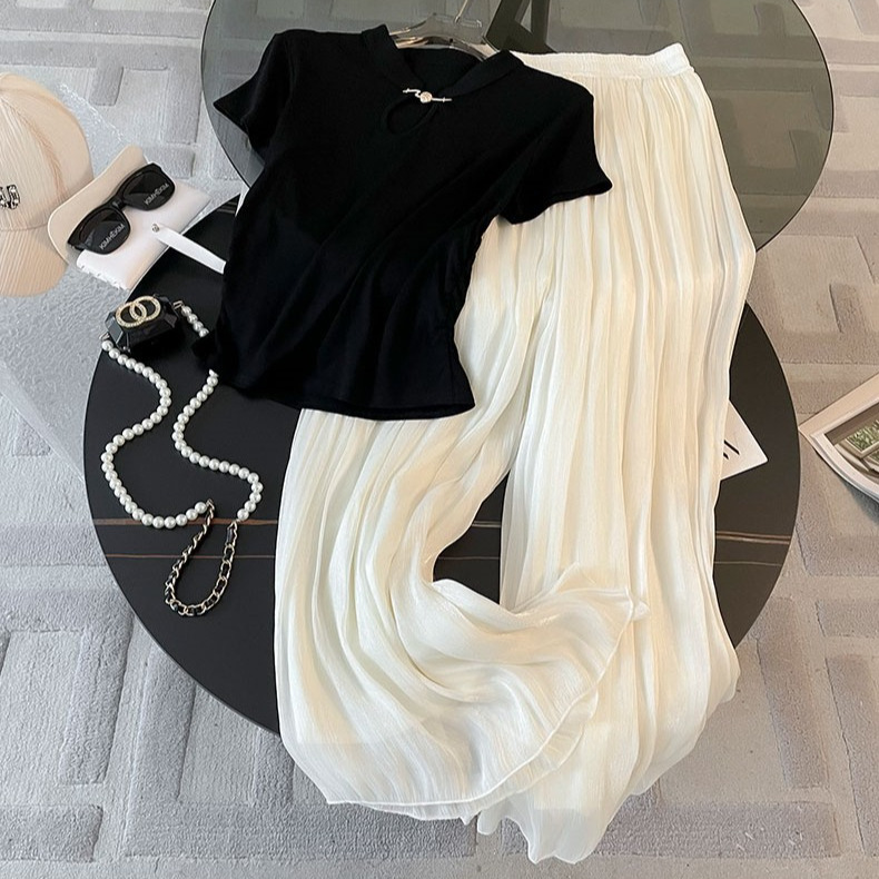 | nameOriginal | 7701 New Chinese Style National Style Short Sleeve Suit Women's Summer Fashion Age-reducing Casual Sports Style Wide Leg Pants and Skirt Two-piece Set |