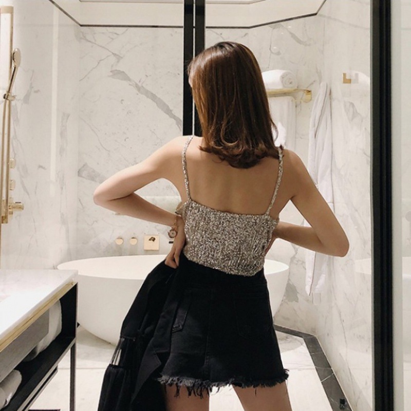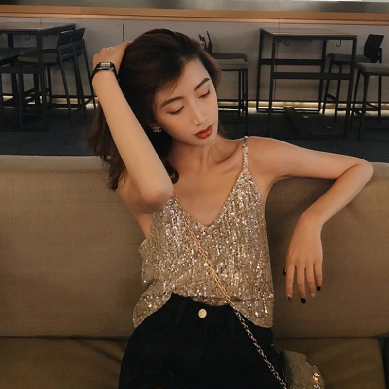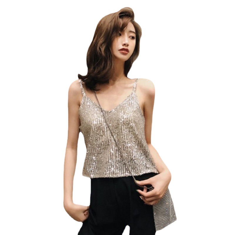 Sling Outer Wear Fashionable Didi Bouncing Summer Korean Style New Golden Glitter Sequin Vest Women’s Inner Wear Sexy Women