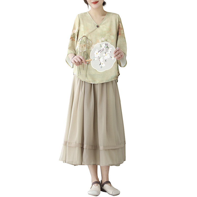 | nameOriginal | Foreign Trade Women's Clothing 2023 Summer Republic of China Style Tea Clothing Retro New Chinese Style Improved Hanfu Daily Cheongsam Set |