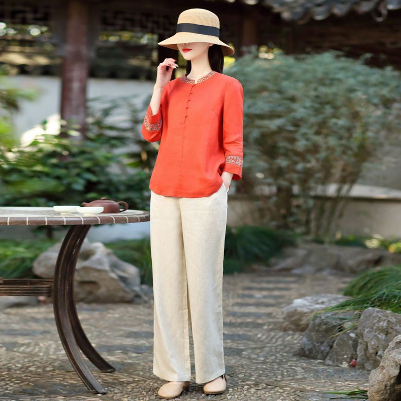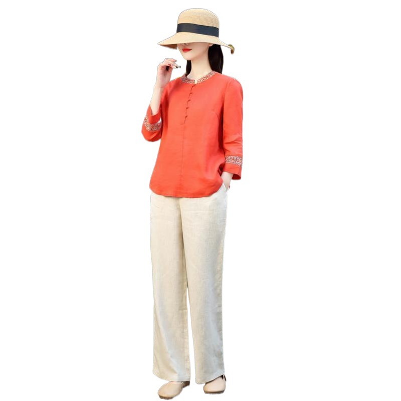 | nameOriginal | Cotton and Linen Set Two-piece High-end Retro Original Ethnic Style 2024 New Women's Spring and Autumn Wide Wife Light Luxury |