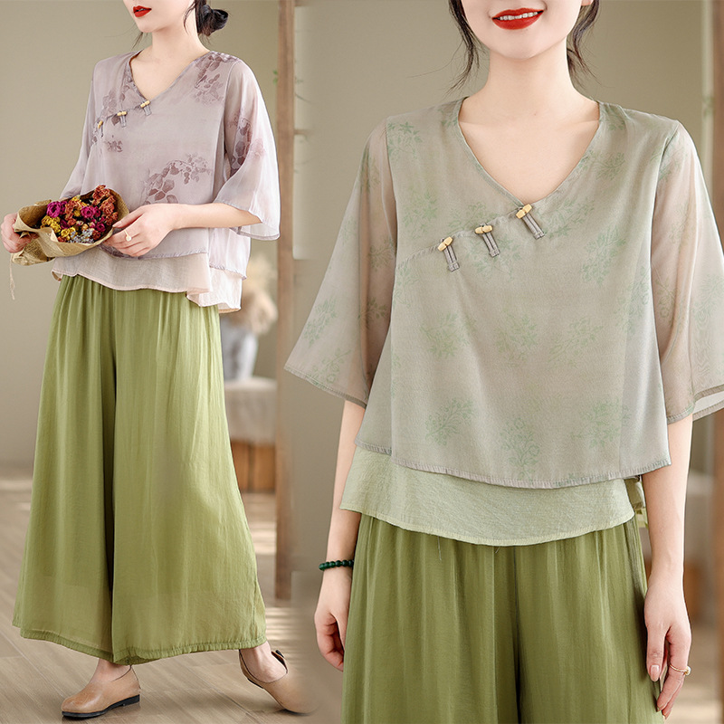 | nameOriginal | National Style Suit Tea Clothing Retro New Chinese Style Improved Hanfu Cheongsam Top Summer Suit |