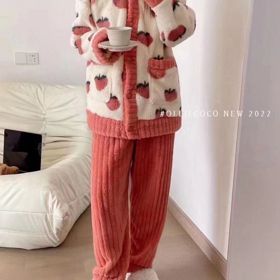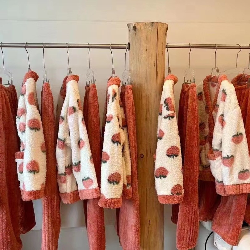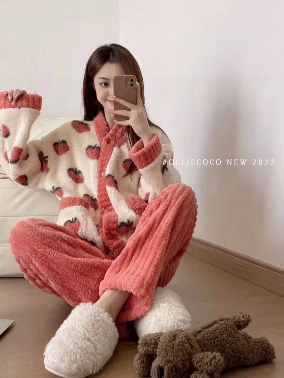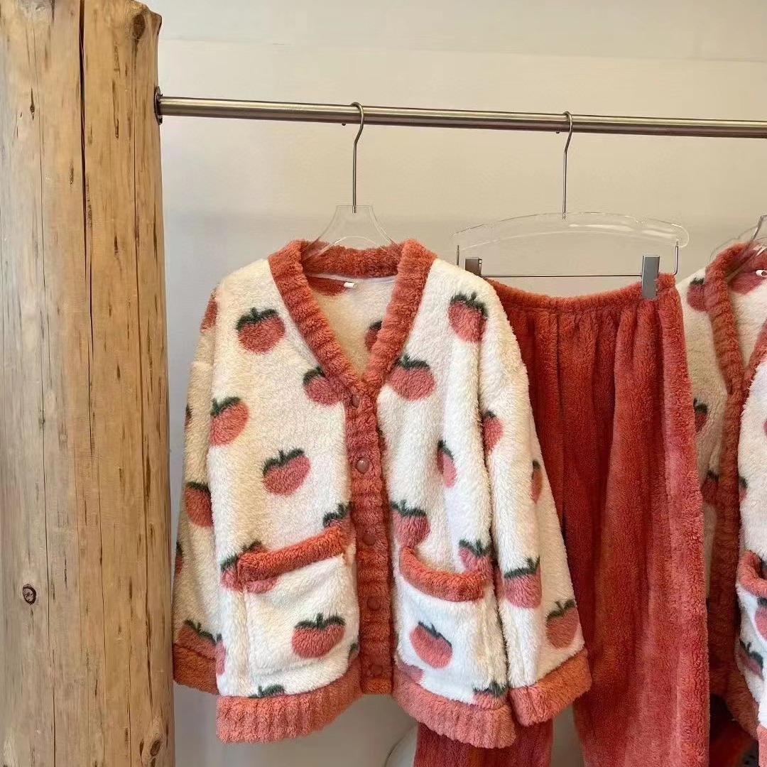 | nameOriginal | 2023 autumn and winter new pajamas women's cute sweet fleece-lined thick warm loose outer wear oolong peach home wear |
