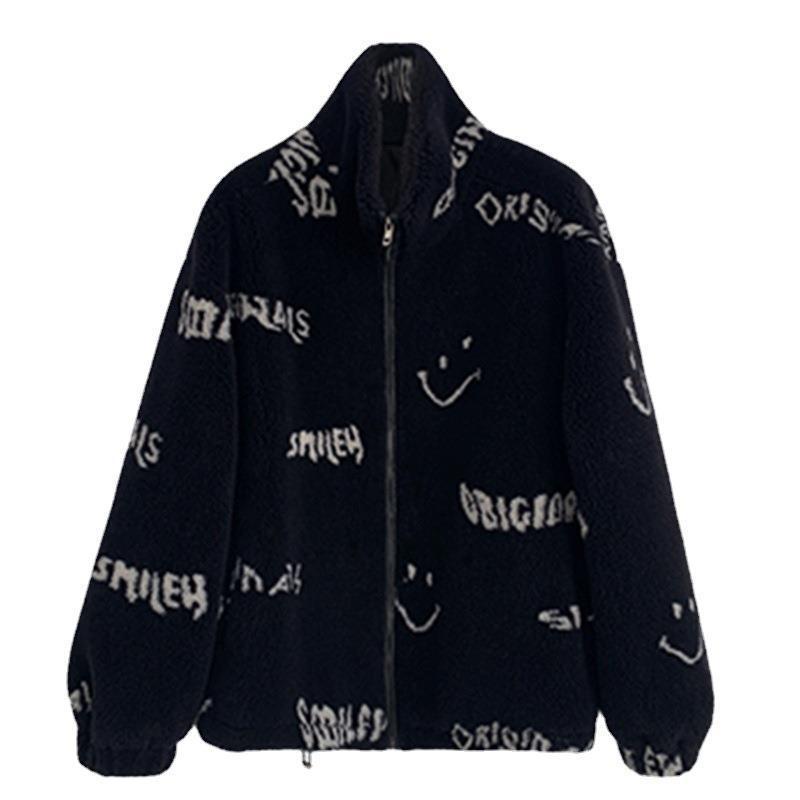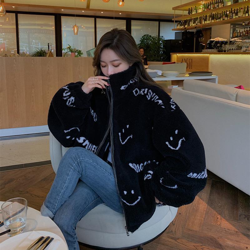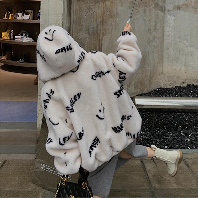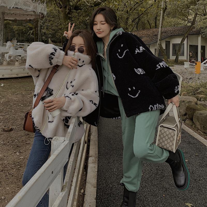 | nameOriginal | Smiley face faux lamb fur coat for women 2024 autumn and winter New style fried Street young loose plush coat winter |