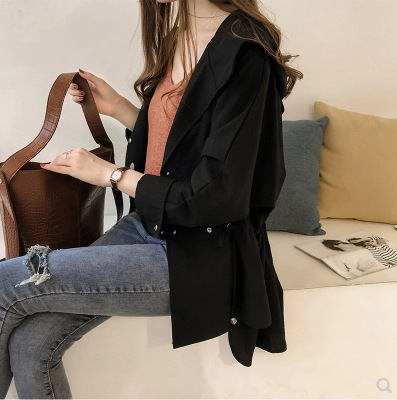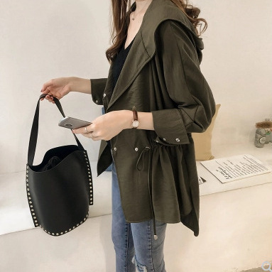 Early Autumn Women’s New 2024 Korean Style Loose BF Hooded Windbreaker Women’s Mid-length Casual Long-sleeved Cardigan Coat Trendy