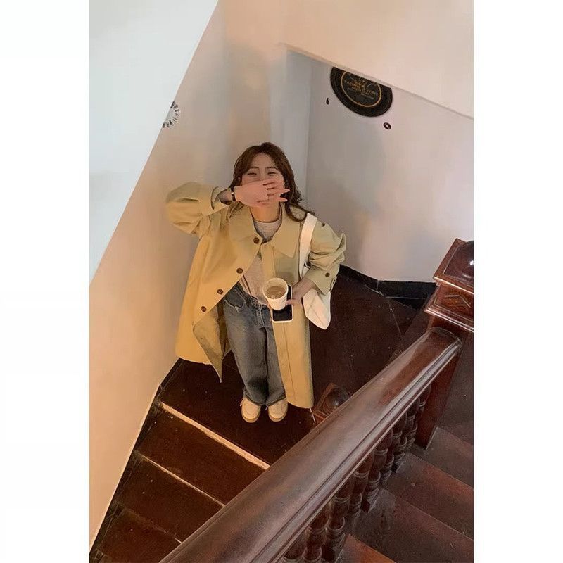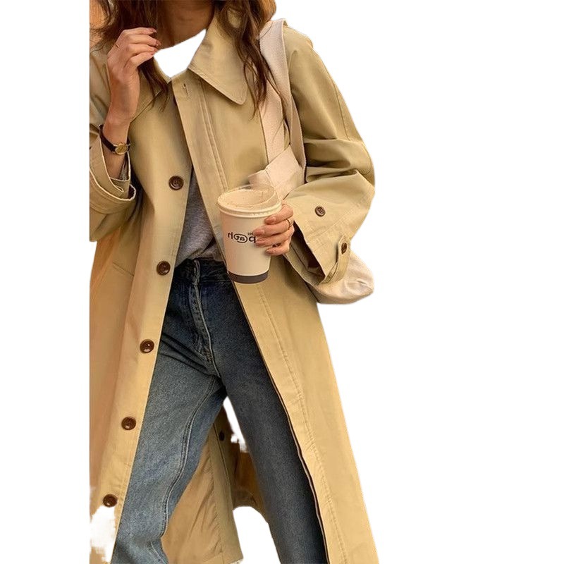 | nameOriginal | Trench coat for women autumn 2024 New Korean style loose mid-length small British style khaki overcoat |