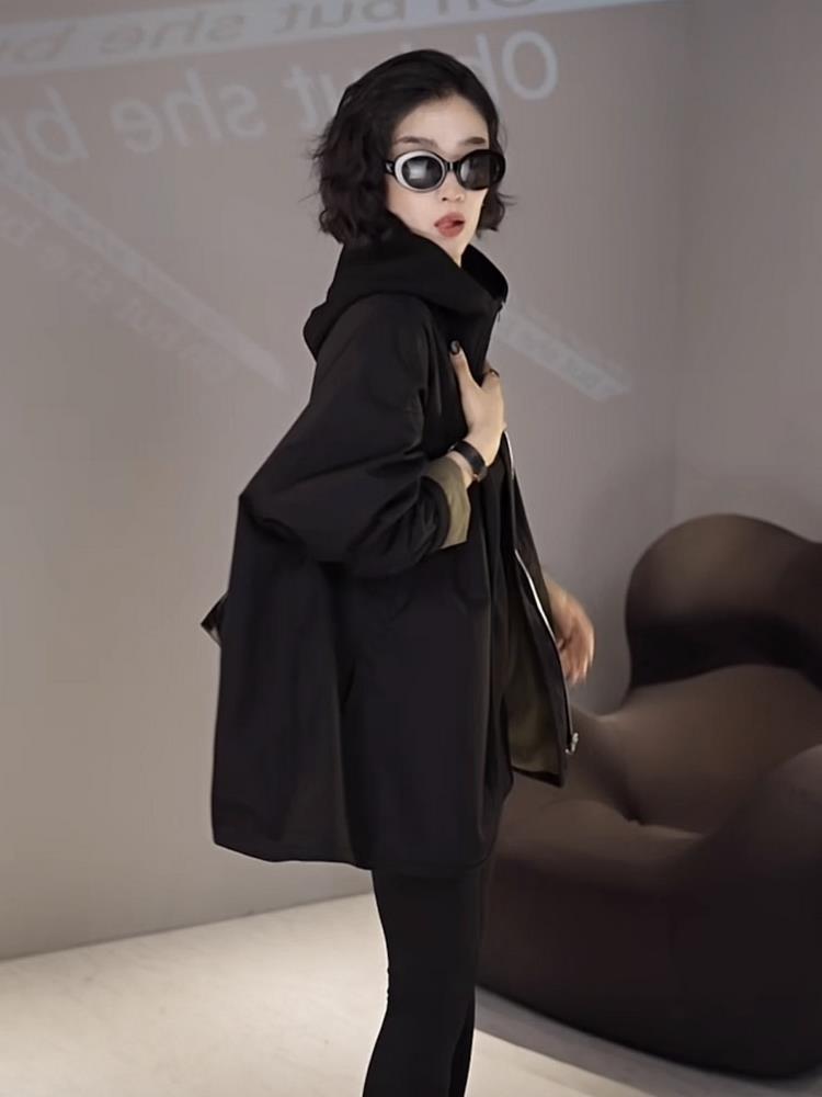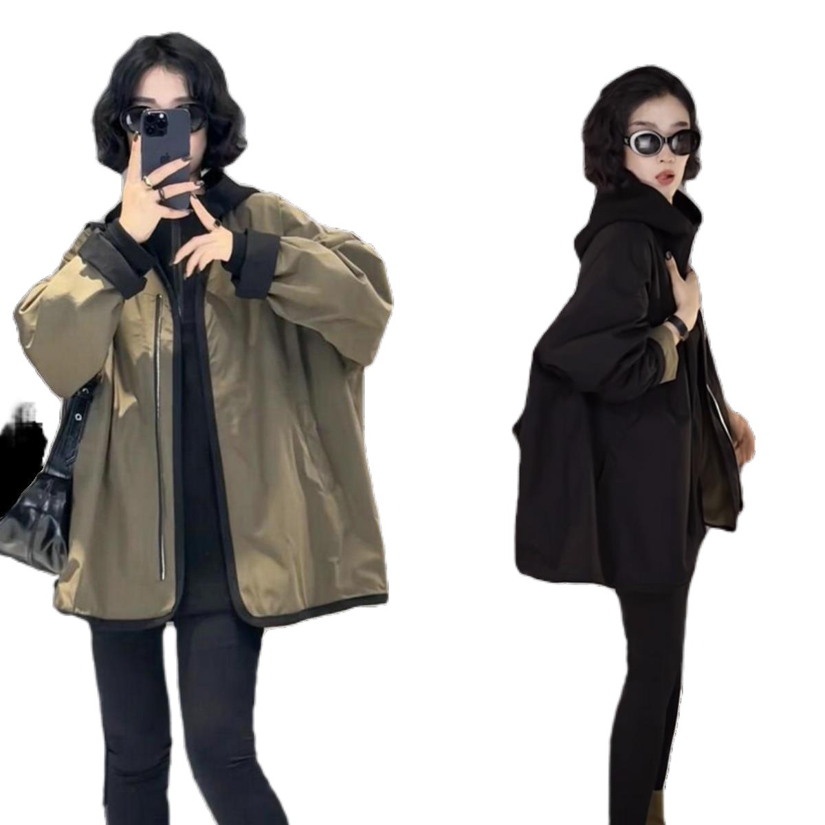 | nameOriginal | T European Contrast Color V-neck Windbreaker Women's Spring New Loose Slimming All-match Baseball Mid-length Coat |