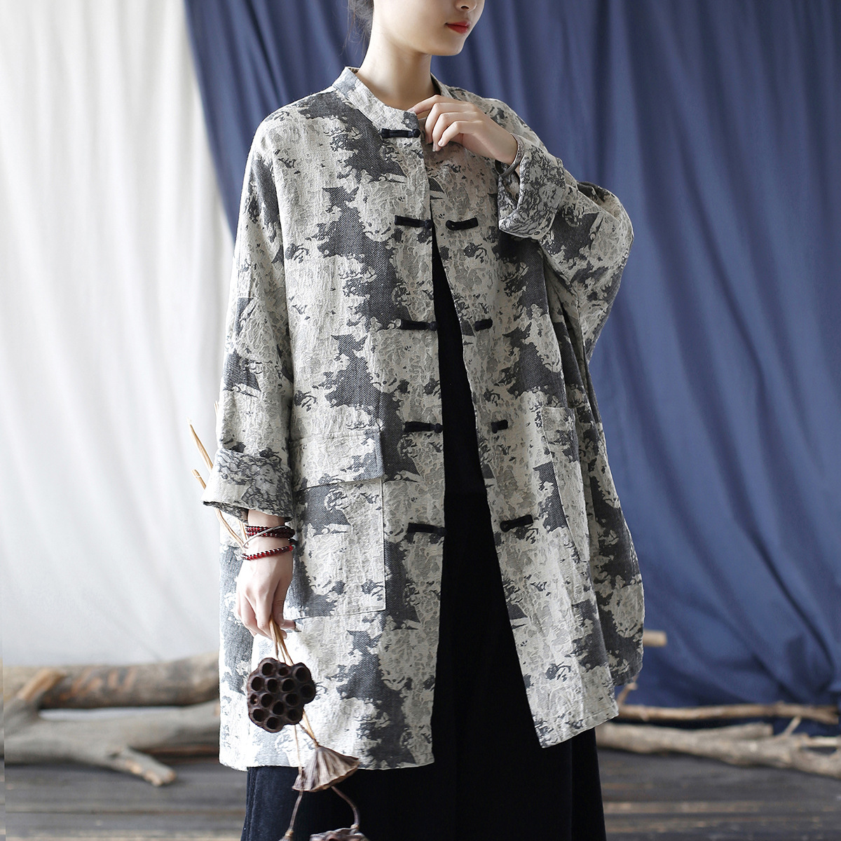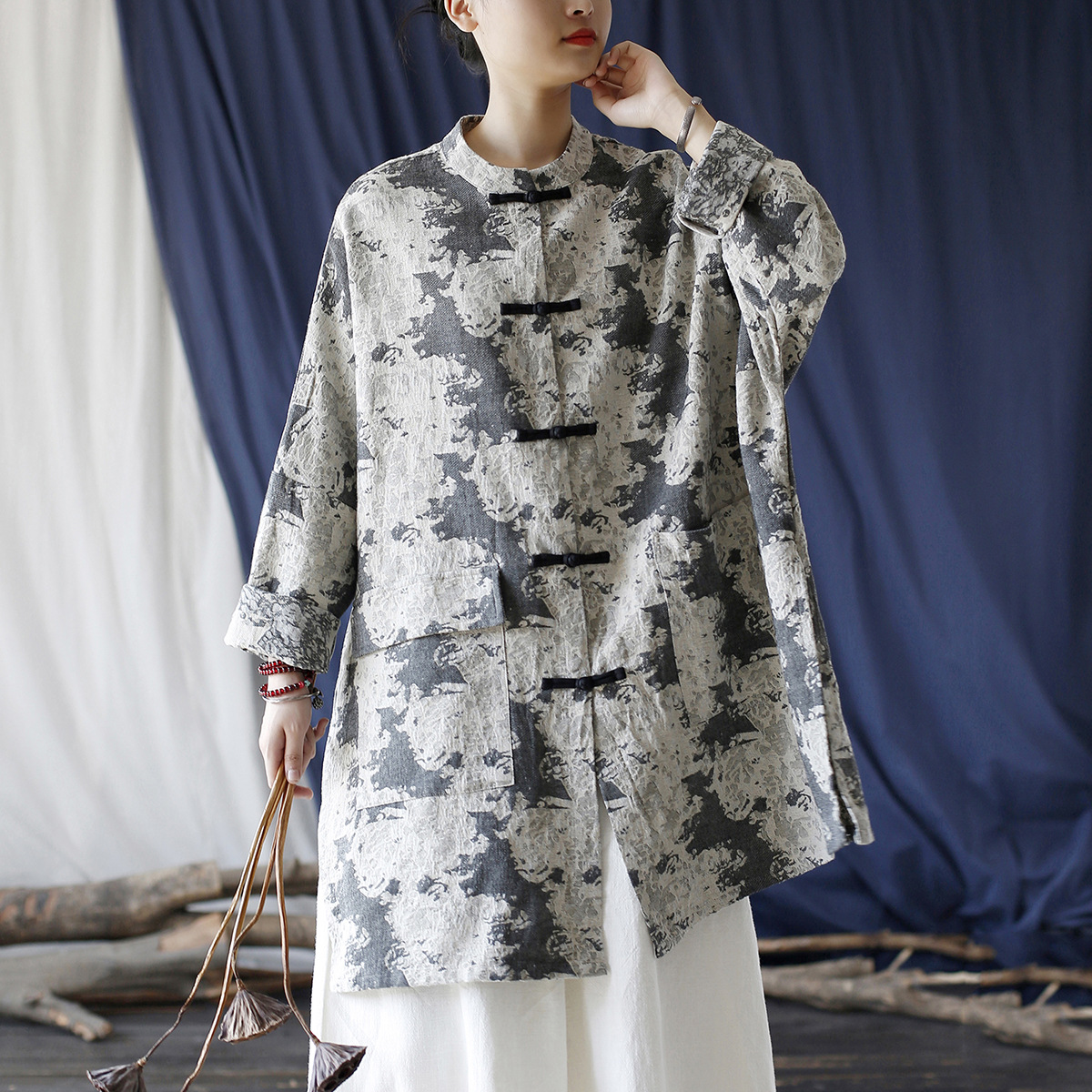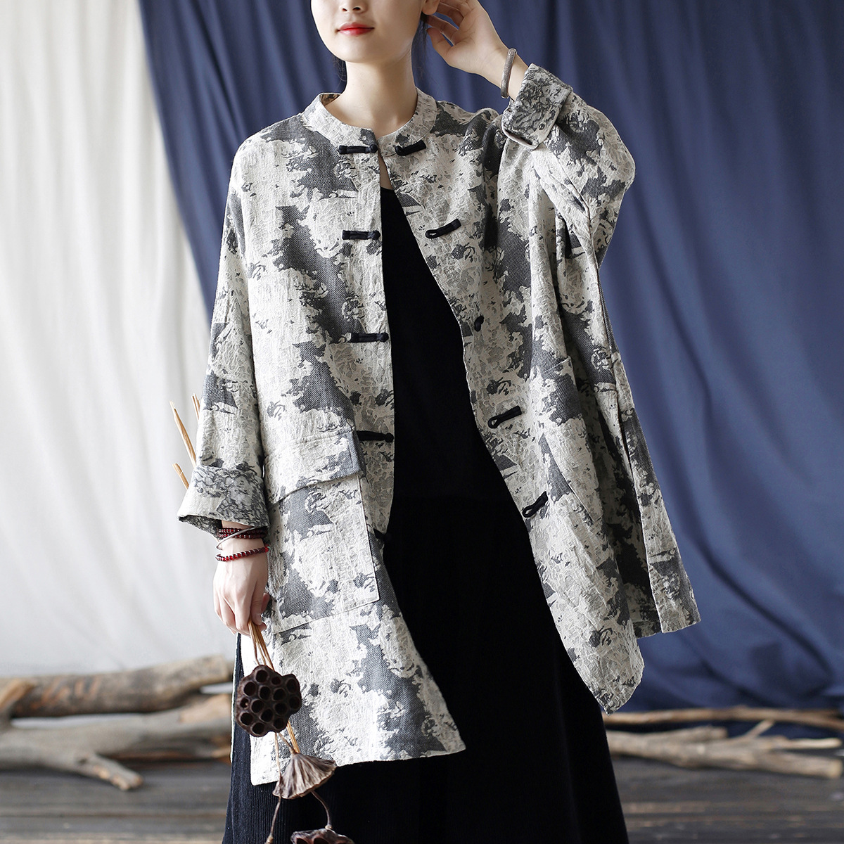 | nameOriginal | 23105 Xi Mo original autumn retro ethnic style distressed stand collar buckle women's coat loose long sleeve coat |
