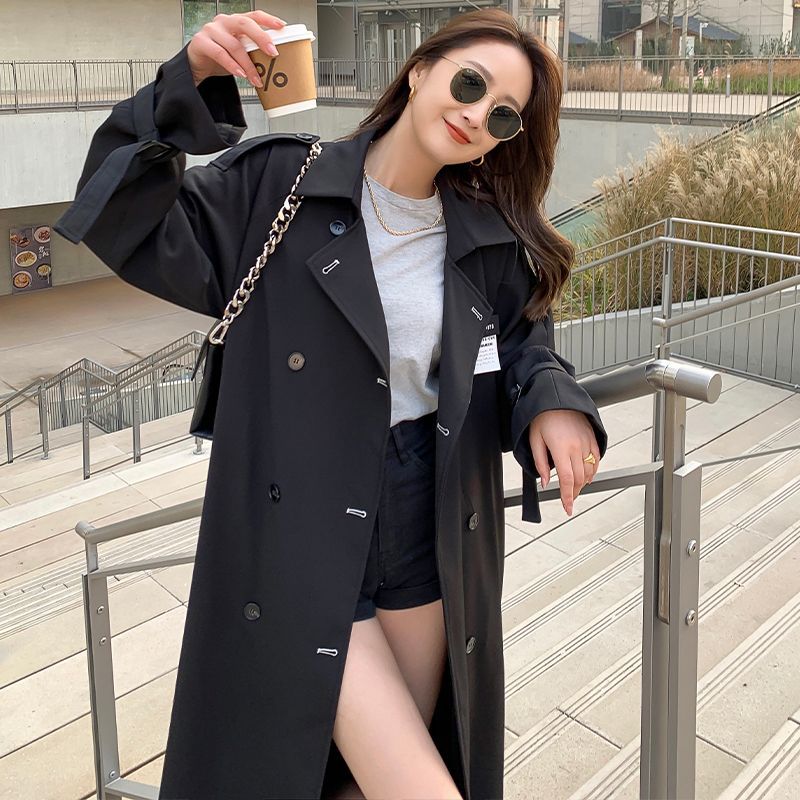 2024 this year’s popular long knee-length British windbreaker coat women’s spring and autumn casual small student coat