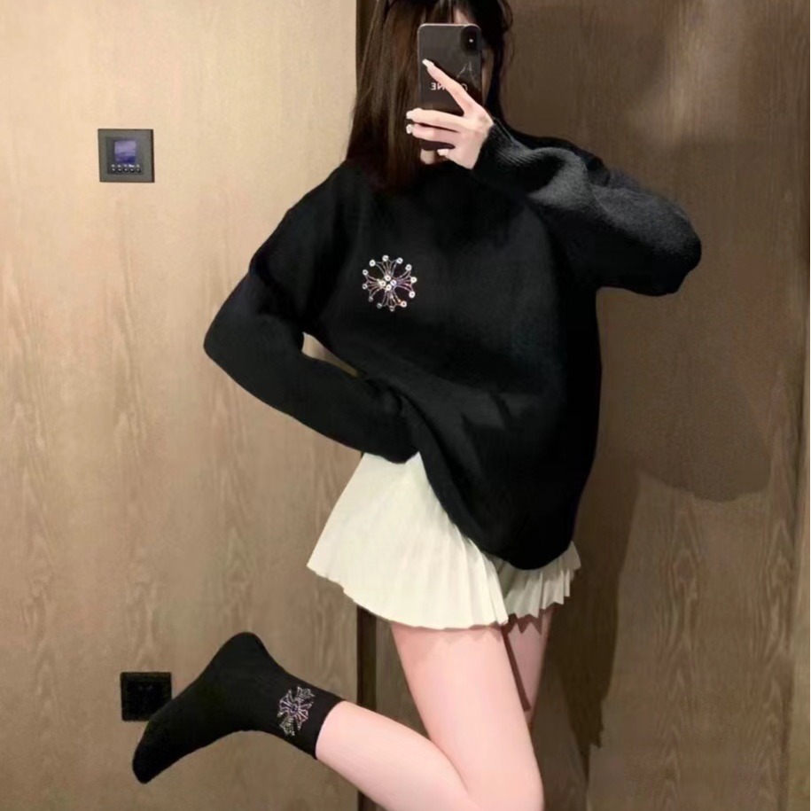 | nameOriginal | Design sense back Sanskrit rhinestone round neck slimming sweater lazy style loose age-reducing pullover sweater with socks |