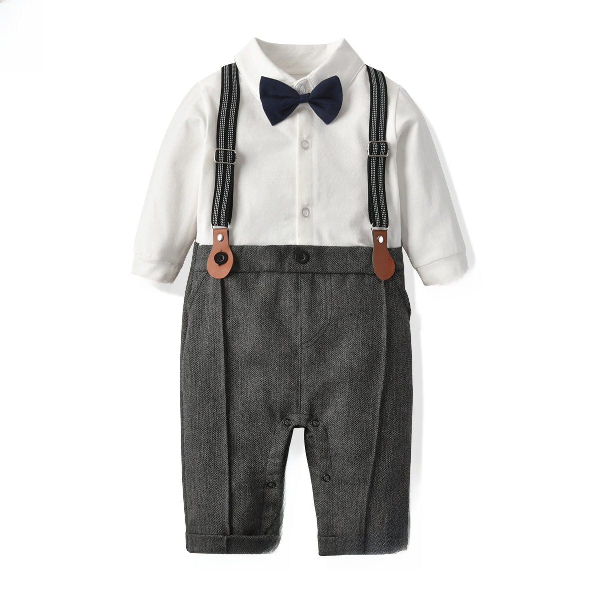Cross-border Spring and Autumn New Children’s Wear Baby and Toddler British One-piece Climbing Gentleman’s Hat Week Suit Newborn Gentleman’s Suit