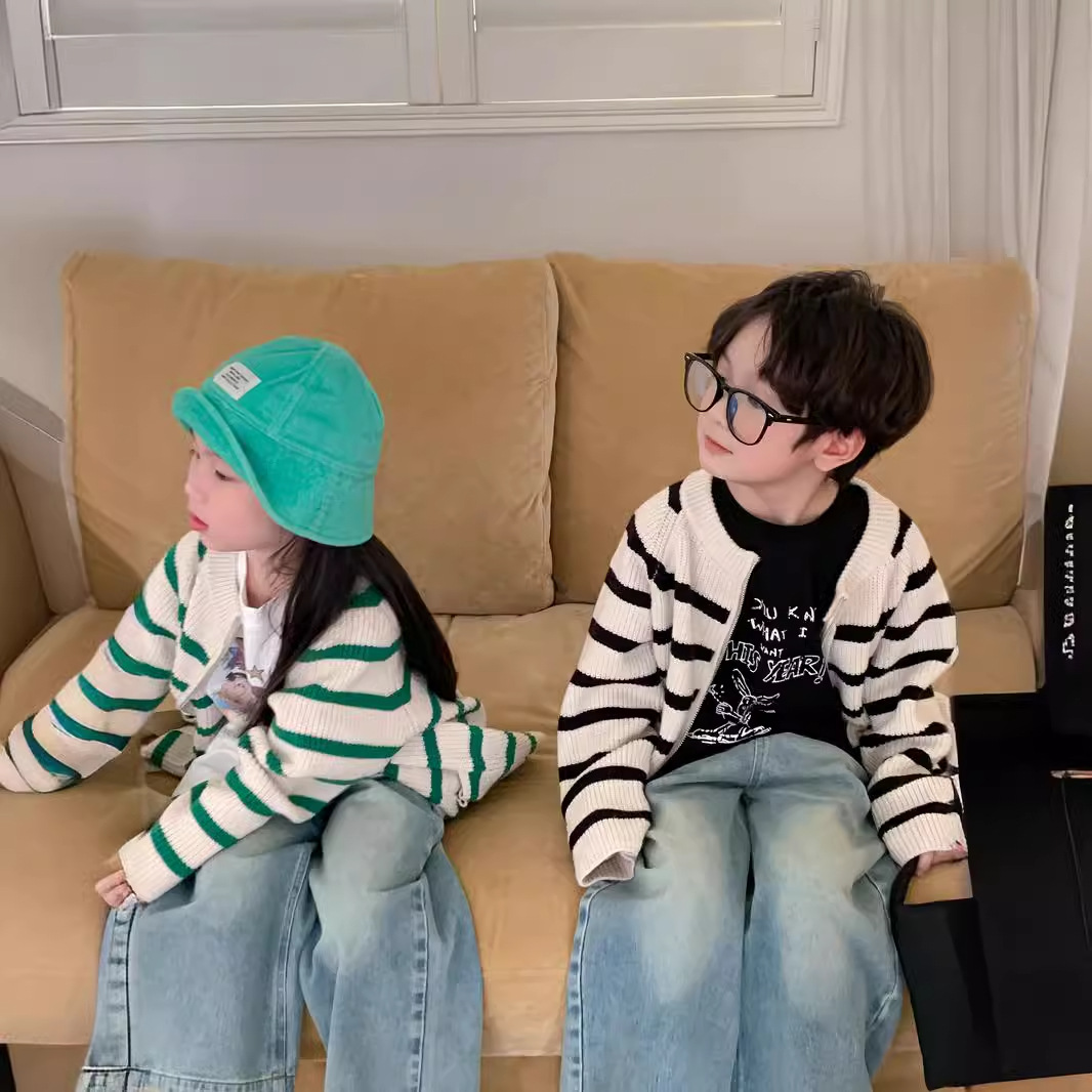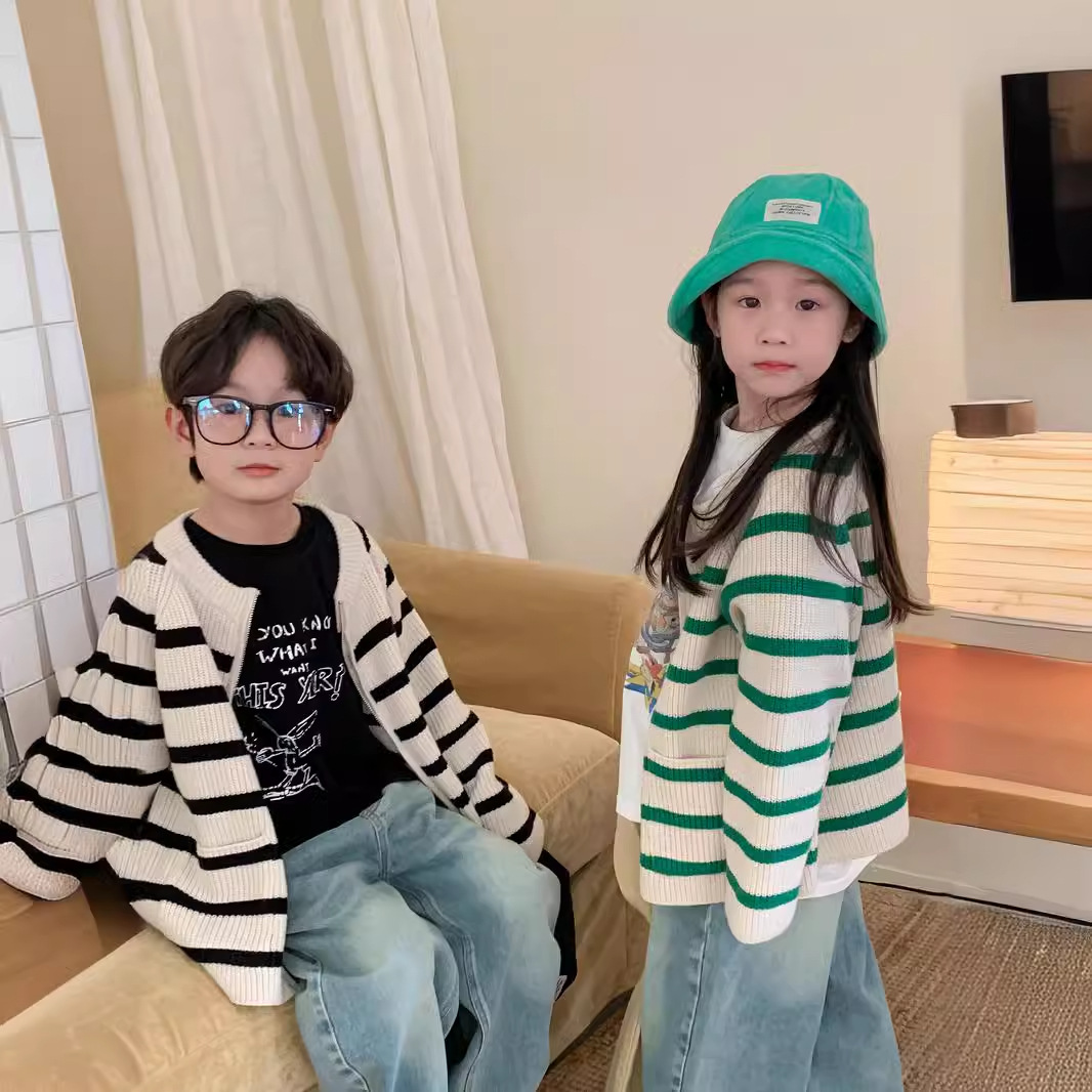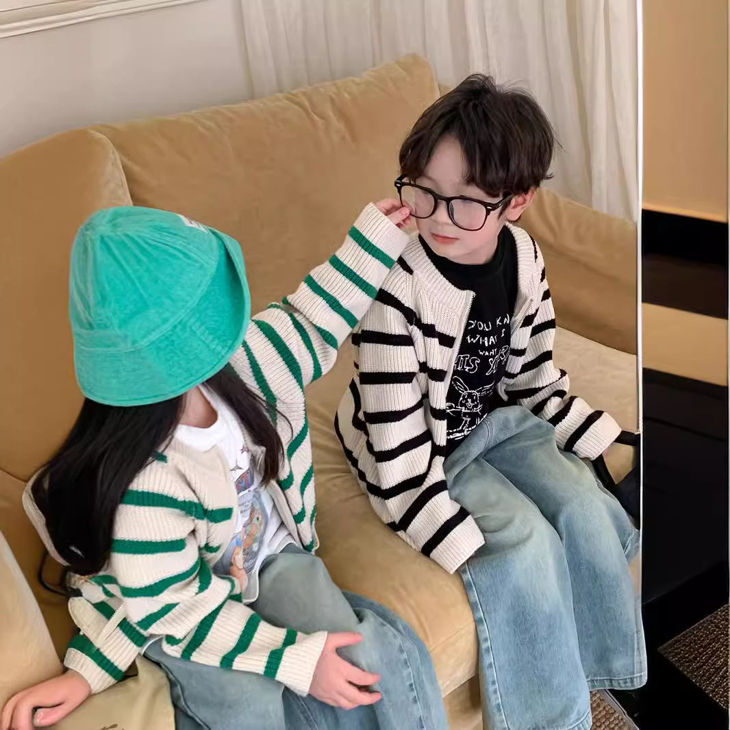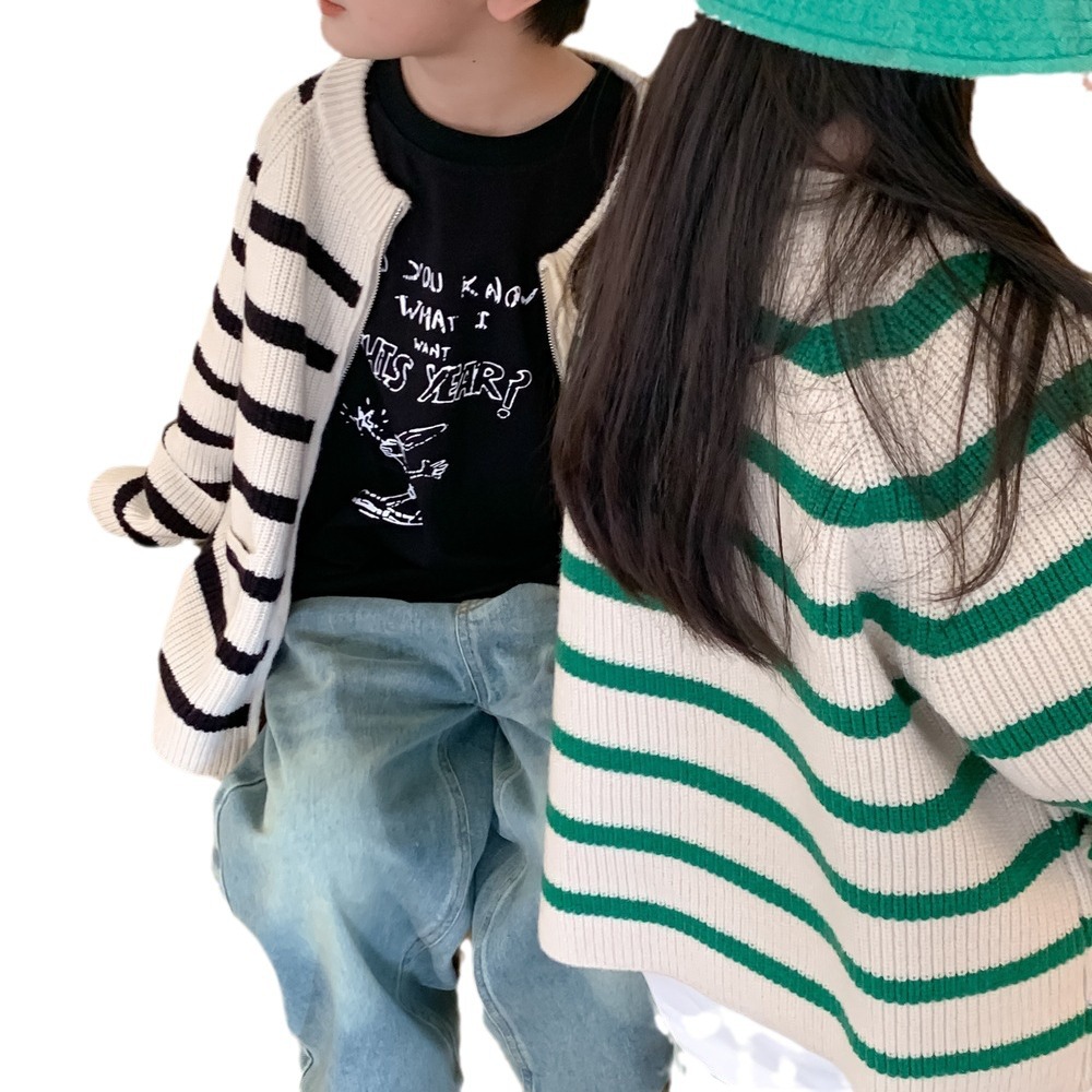 | nameOriginal | Children's sweater generation 2024 spring boys and girls Korean style zipper striped sweater children's casual loose knitted jacket |
