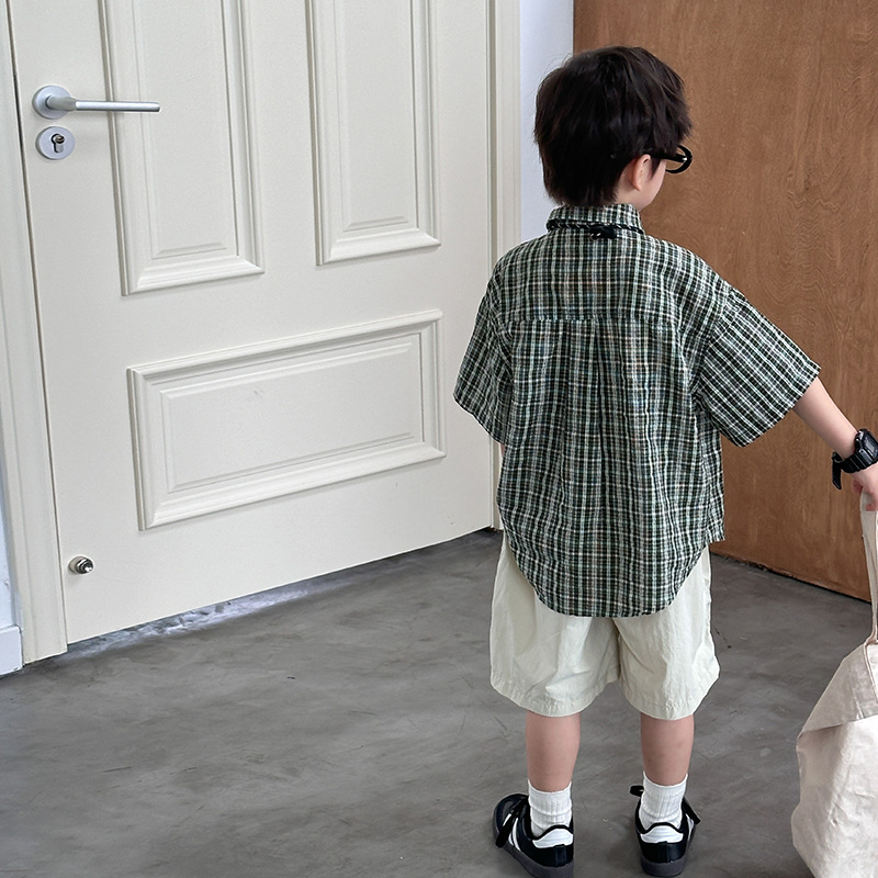 | nameOriginal | [6.18 is mailed 1 hour before every 100-10] boy's coat handsome washed cotton plaid short sleeve shirt |