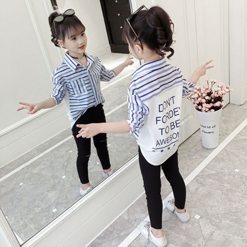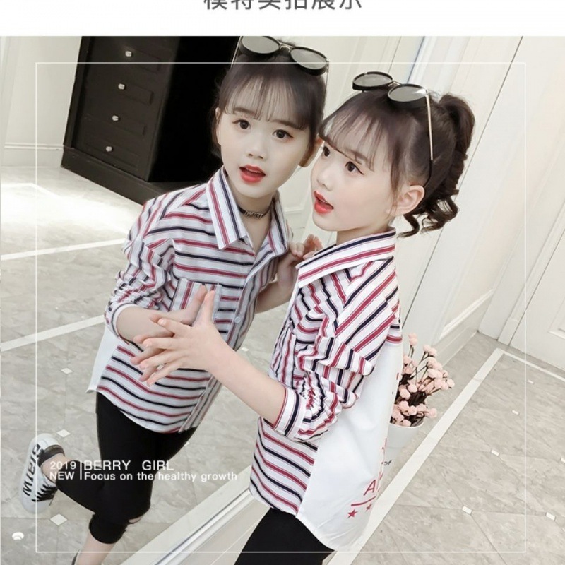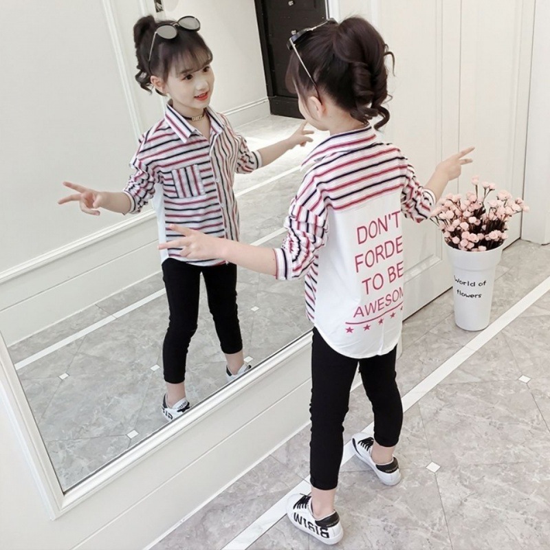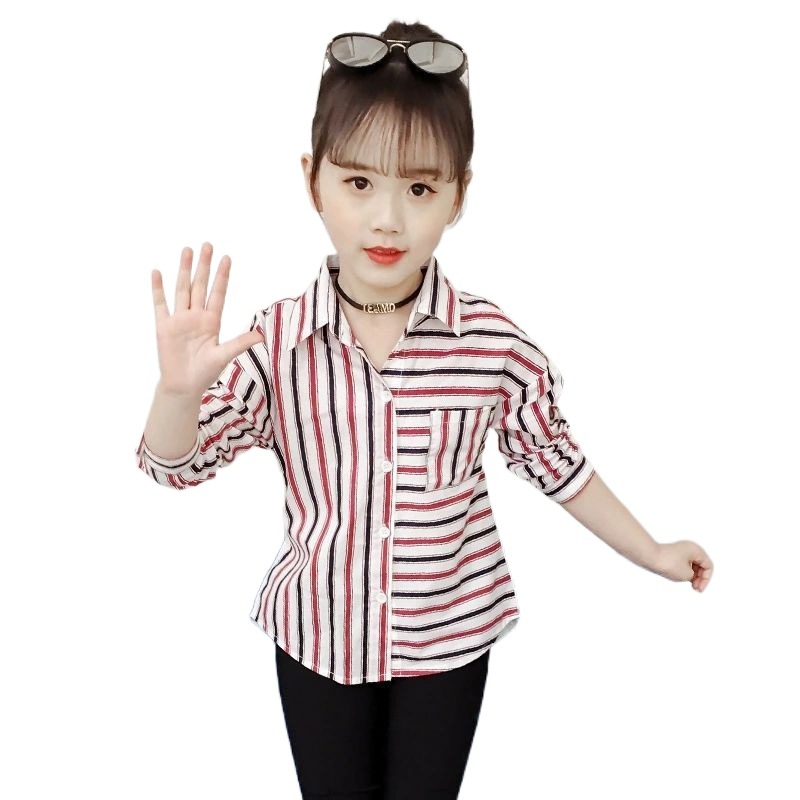 | nameOriginal | Girls' Striped Shirt Korean Loose Spring and Autumn New Long Sleeve Small and Medium-sized Children's Cotton-style Cute Base Top |