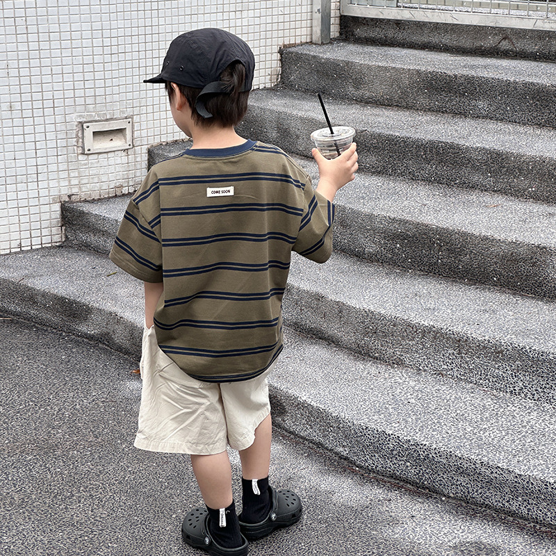| nameOriginal | [Postage 1 hour before the sale at 10: 00 on May 7] Children's Contrast Joker Stripe Label Short Sleeve T-shirt Tide |
