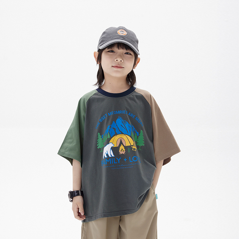| nameOriginal | Children's T-shirt 2024 summer new boys casual color contrast short sleeve children's forest cartoon printed top tide |