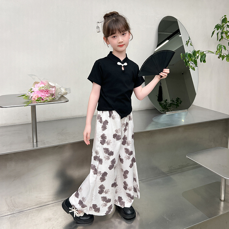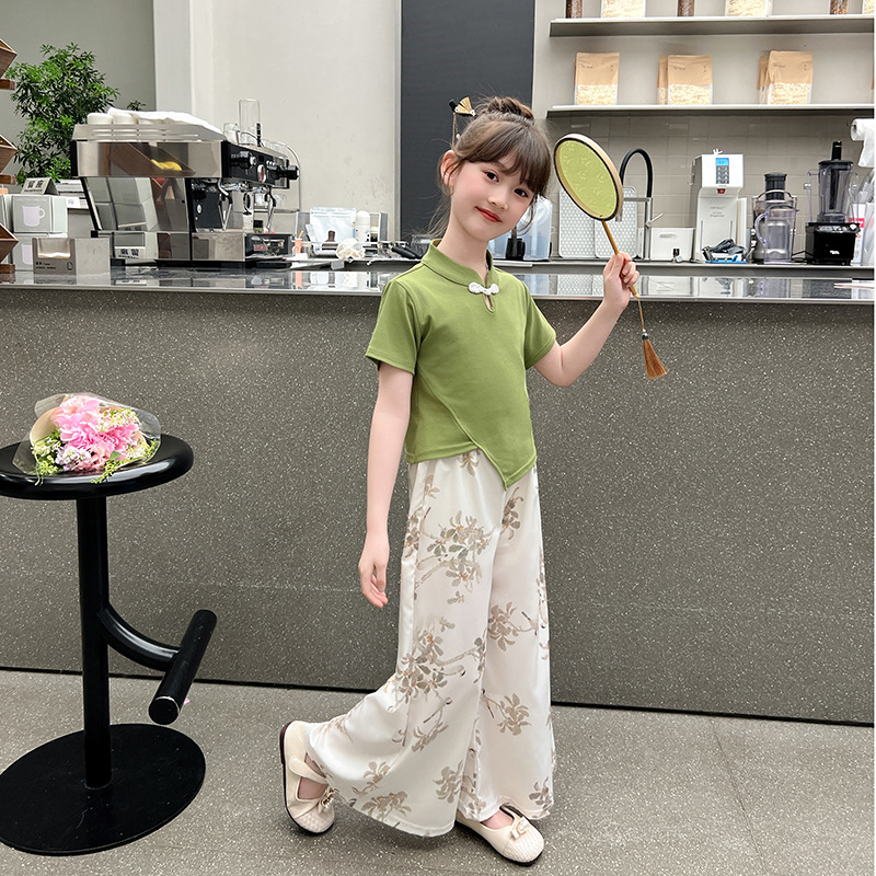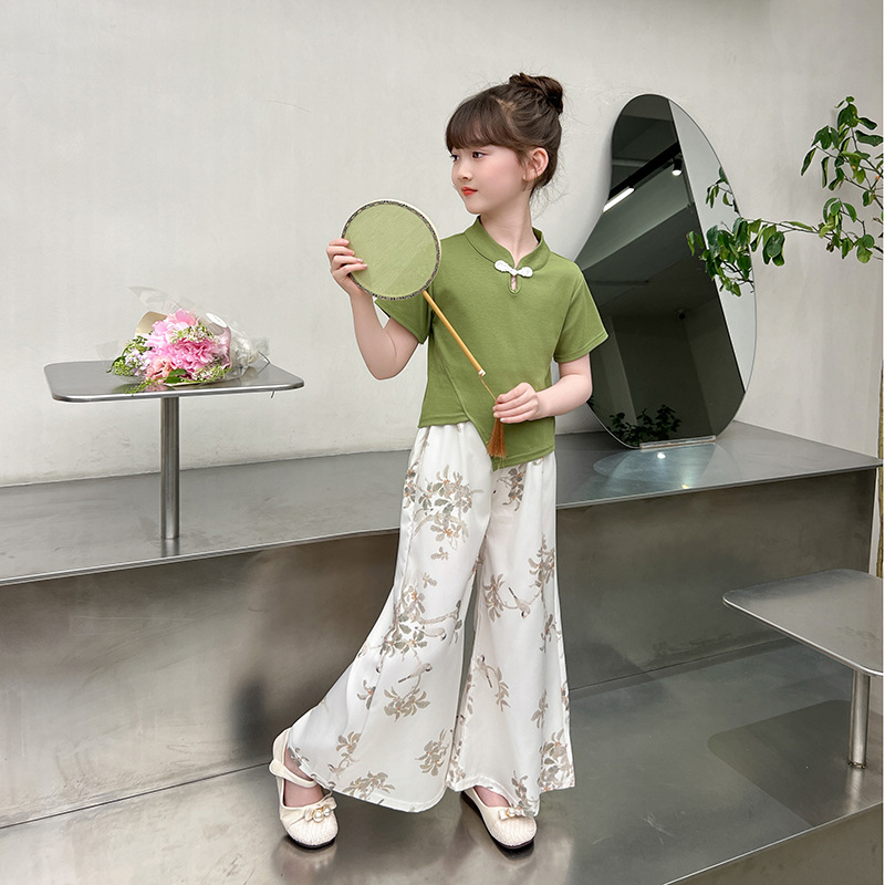 | nameOriginal | Girls' National Style Short-sleeved T-shirt Wide-leg Pants Summer Buckle New Chinese National Style suit |