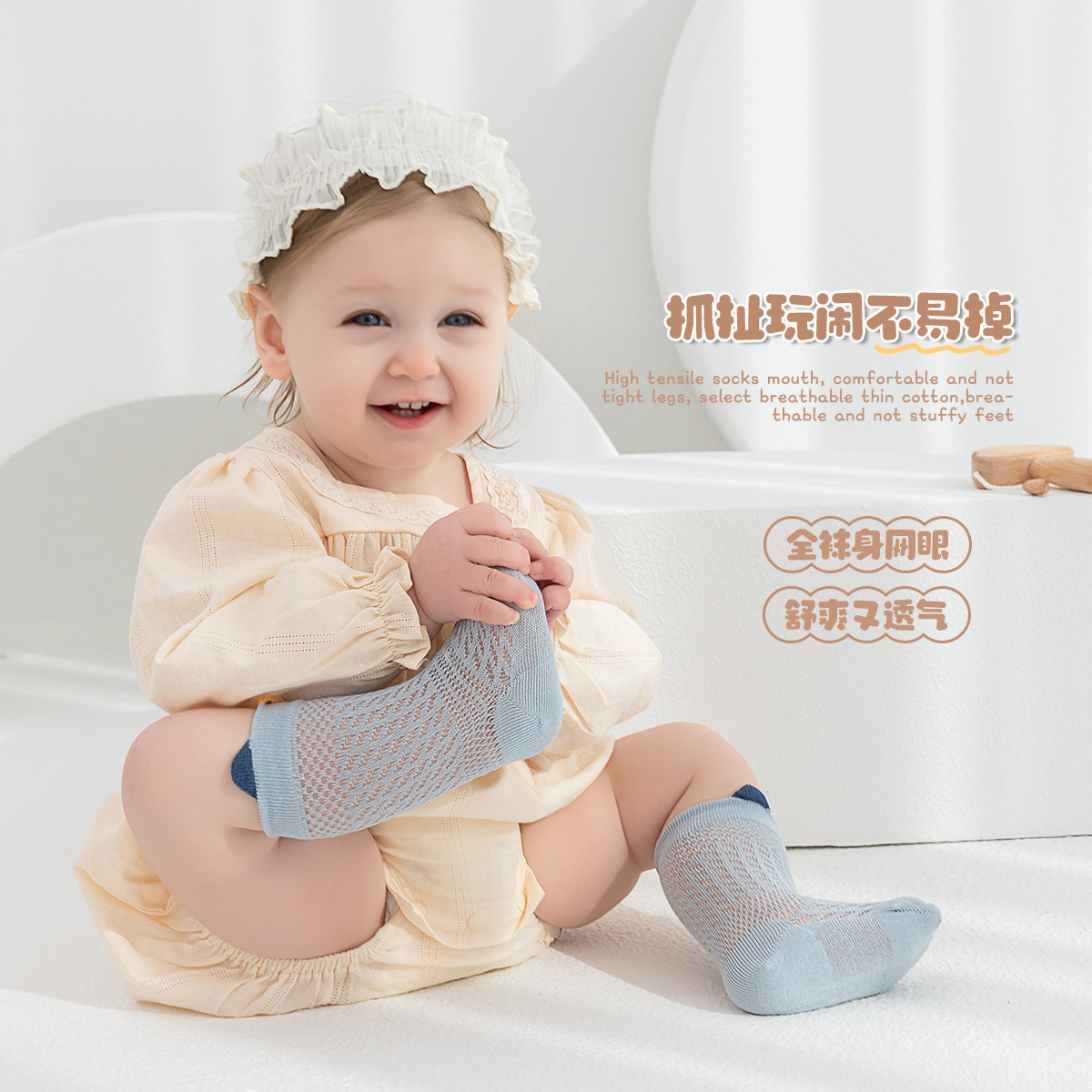 | nameOriginal | Baby socks summer thin baby mid-length anti-mosquito socks cotton mesh socks boneless loose mouth fat baby mid-calf socks |