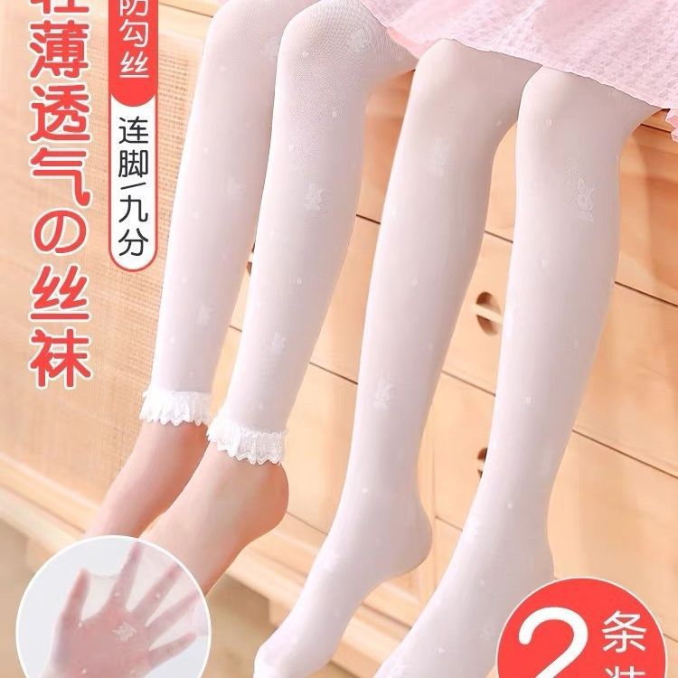 Children’s summer not easy to hook silk stockings girls pantyhose rabbit lace nine points stockings dance mosquito socks