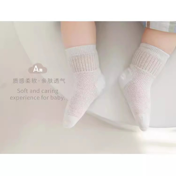 Baby Summer socks boys and girls solid color mesh breathable thin pure cotton socks newborn baby boneless mid-calf length socks