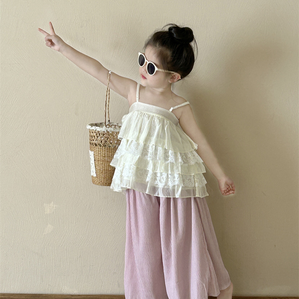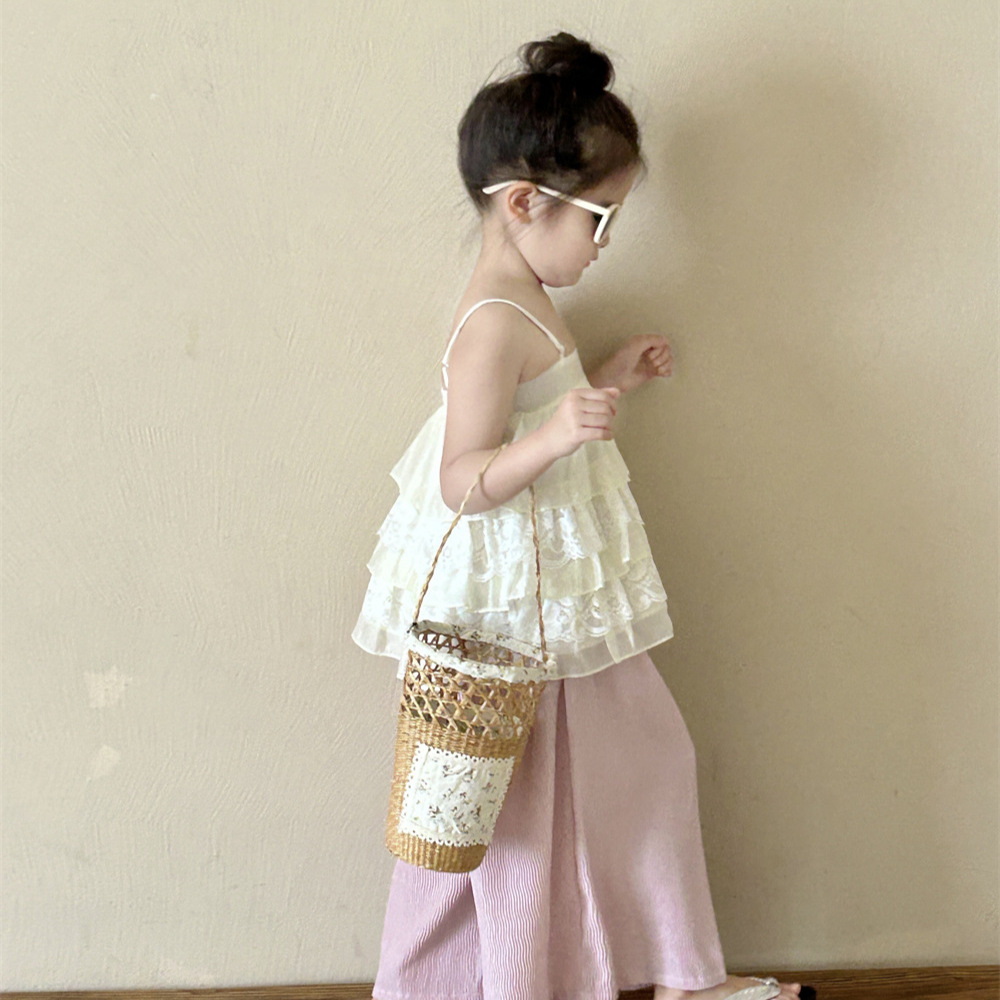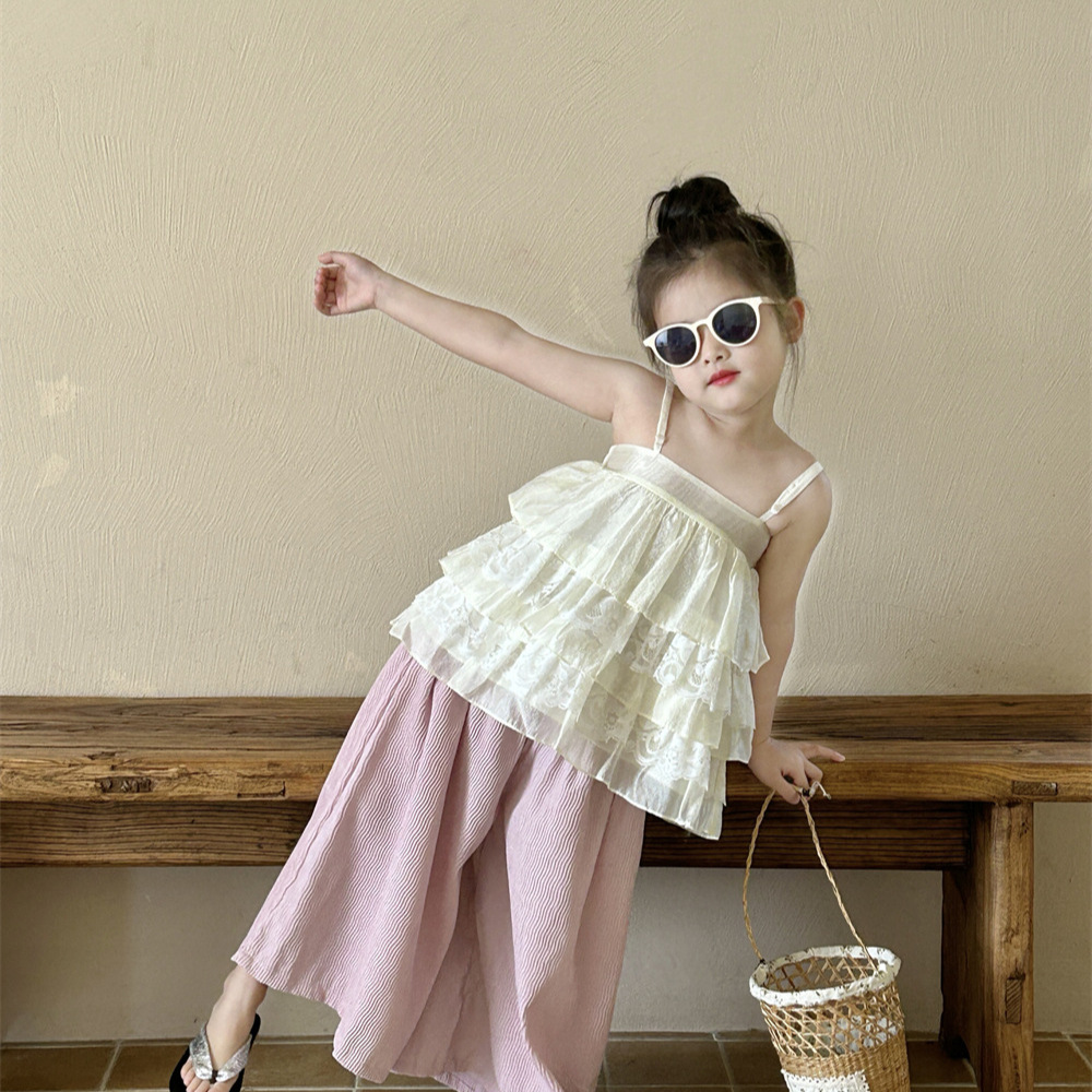 | nameOriginal | Girls' Lace Camisole 2024 Summer New Korean Style Children's Doll Shirt Styky Top Baby Sleeveless Vest |