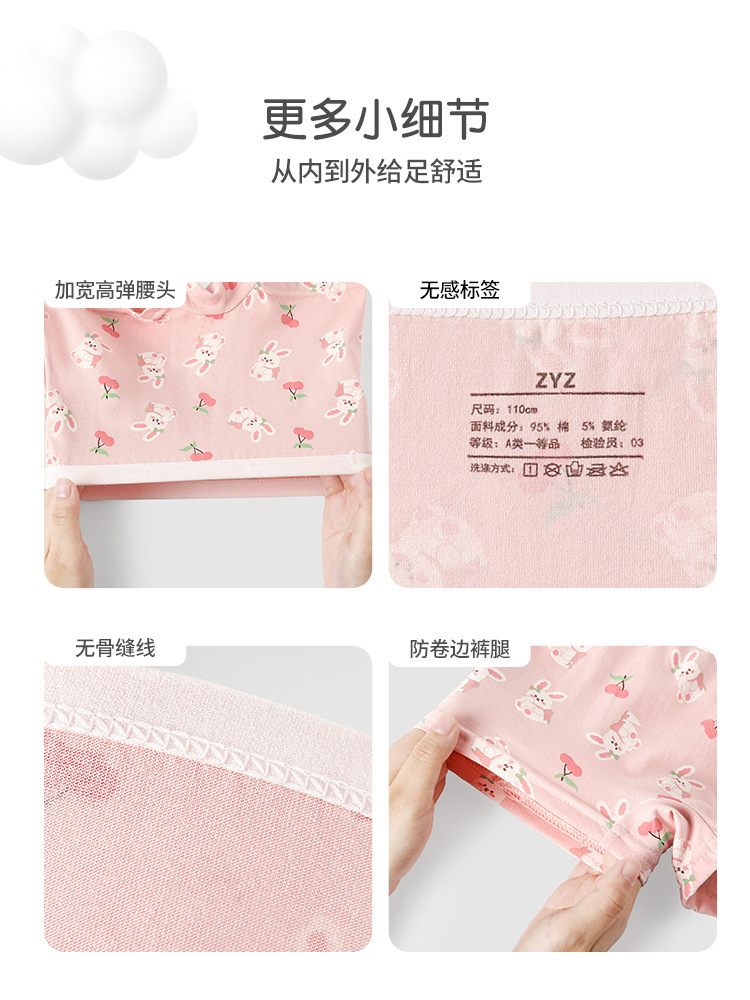 | nameOriginal | N152 girls' underwear spring and summer wholesale pastoral cartoon children's boxer underwear color matching striped cotton children's underwear |