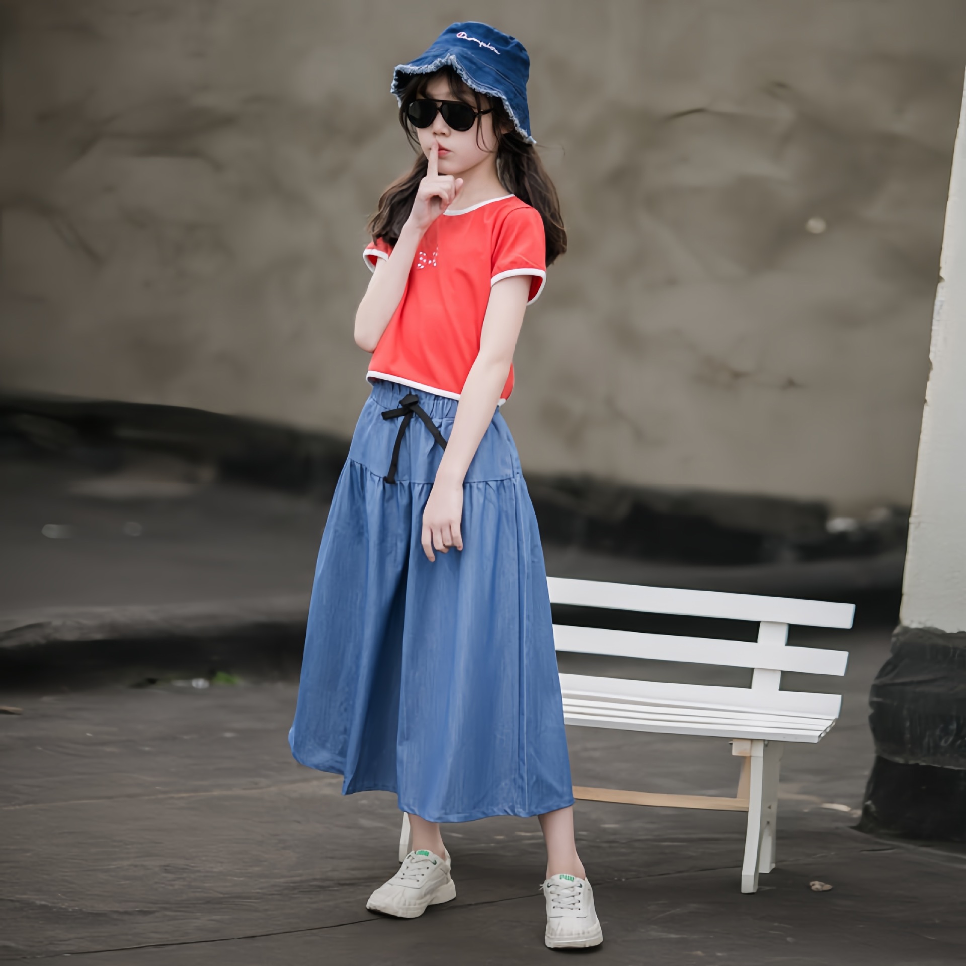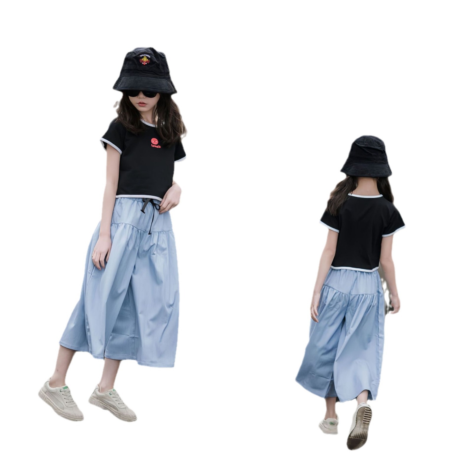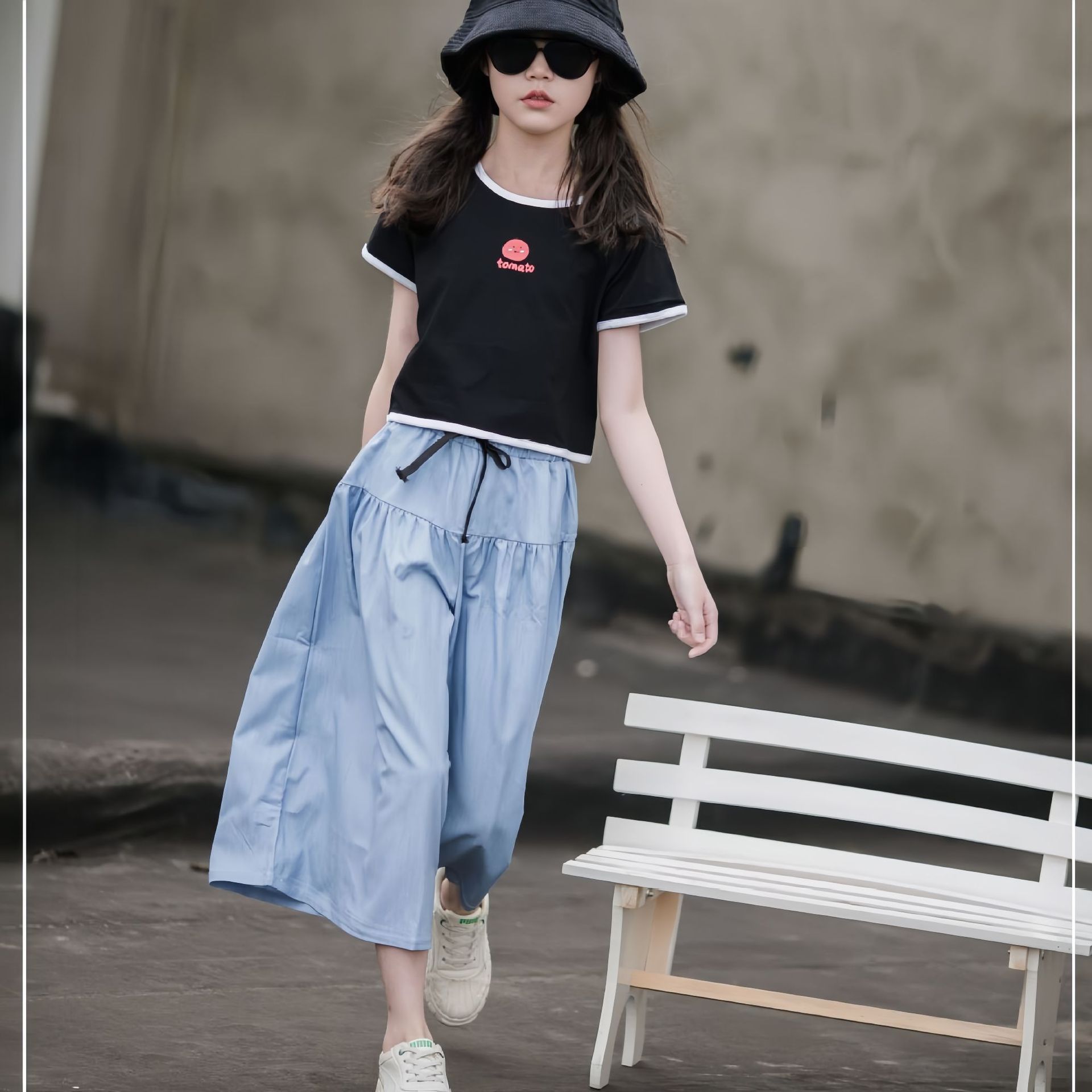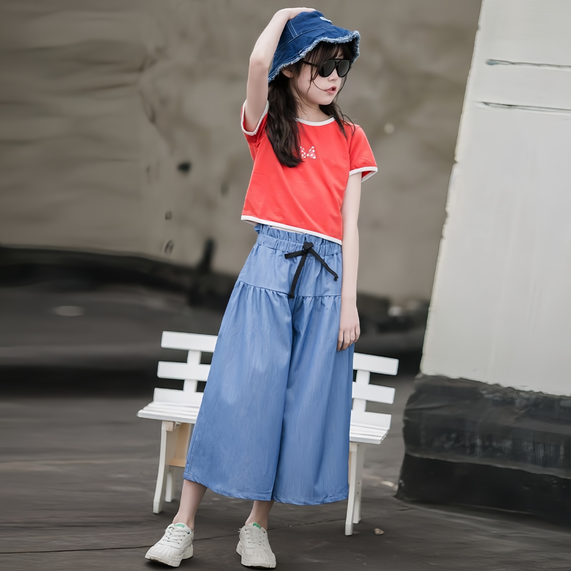 | nameOriginal | Girls' Denim Wide-leg Pants Tencel 2023 Summer New Arrival Middle and Large Children's Casual Pants Cropped Pants Skirt Pants Thin Western Style |