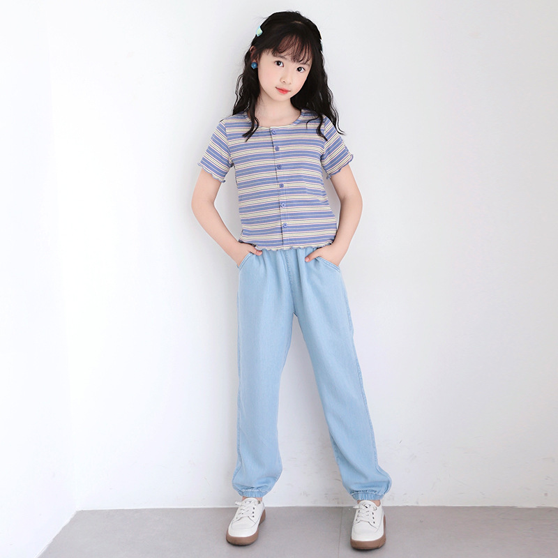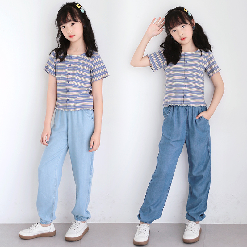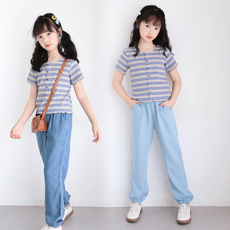 | nameOriginal | Hanban Girls' Pants 2023 Spring and Summer Middle and Large Children's Thin Soft Tencel Large Children's Foot-Bundled Anti-mosquito Sports Jeans |