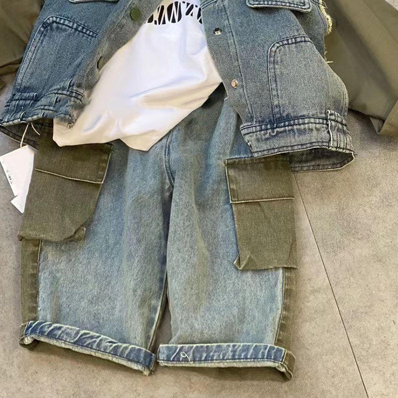 | nameOriginal | South Korea children's clothing boys online popular suit spring and autumn 2024 new vintage stitching Denim coat straight wide leg pants |