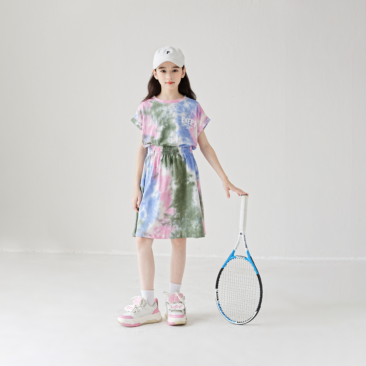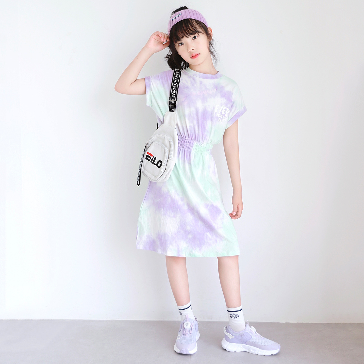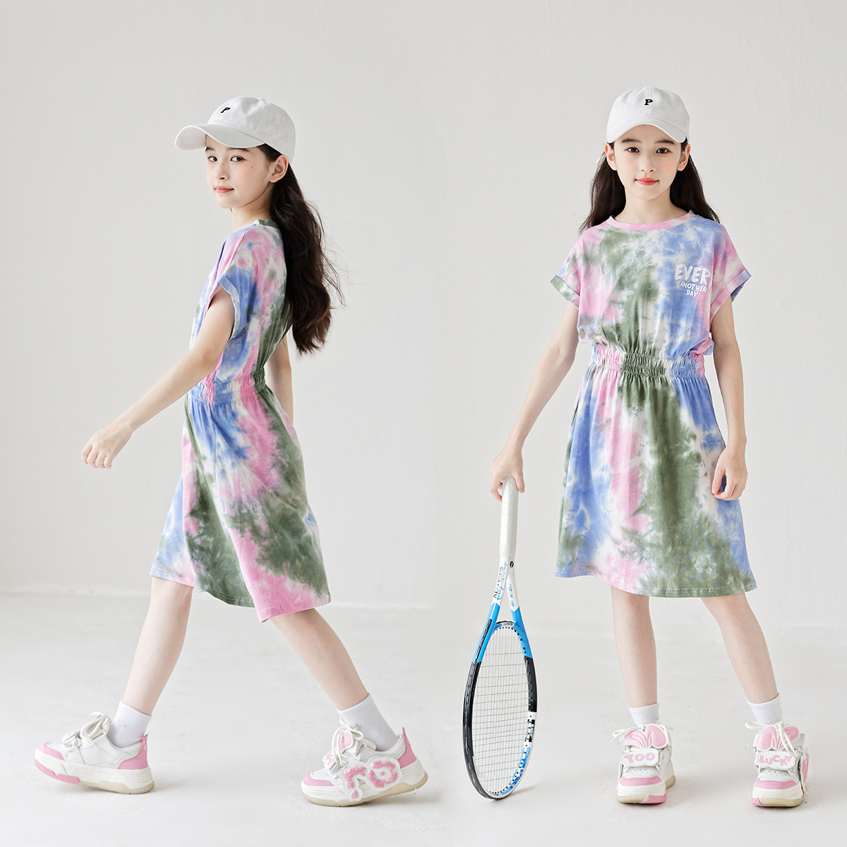 | nameOriginal | 2024 Summer New Short-sleeved Gradient Cross-border Tie-dyeing Waist dress Fashionable Casual Girls T-shirt Skirt |