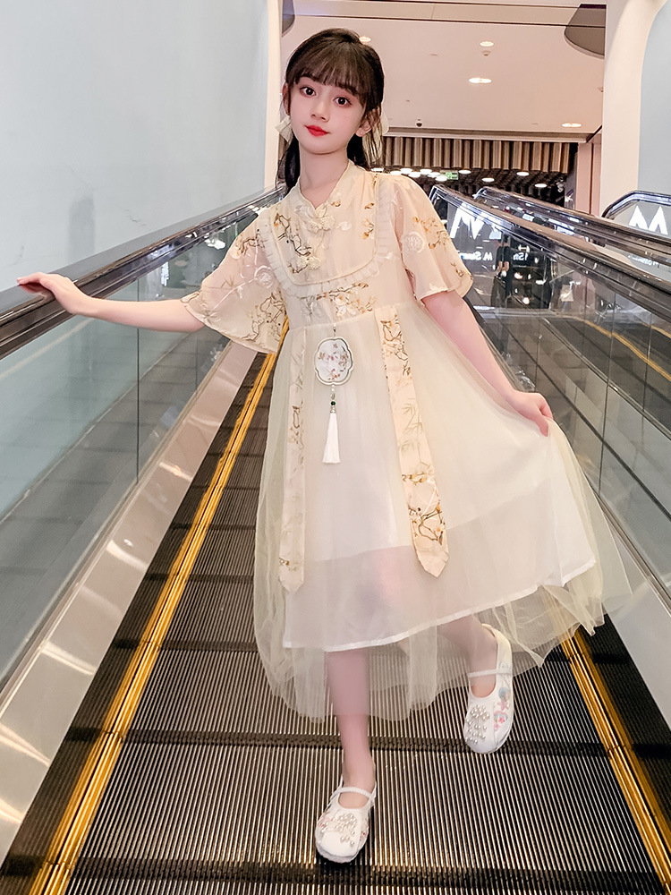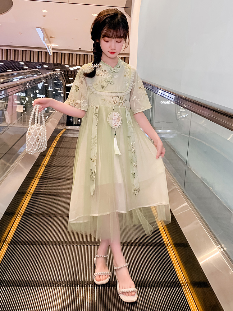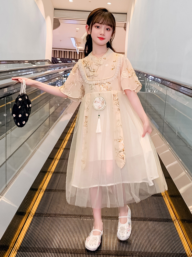 | nameOriginal | 2024 Summer New Girls' dress Summer Dress for Big Kids Chinese Style Hanfu Embroidered Short-sleeved Antique Mesh Dress |