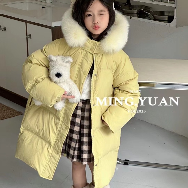 | nameOriginal | South Korea girls' mid-length down jacket 2023 Winter new children's baby thickened white duck down real fur collar coat |