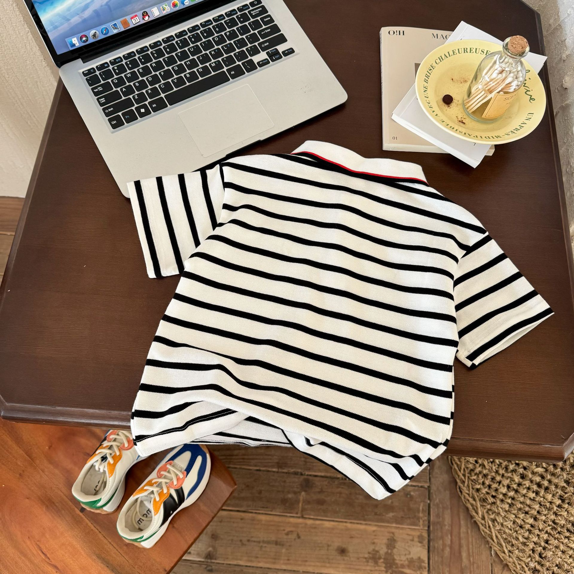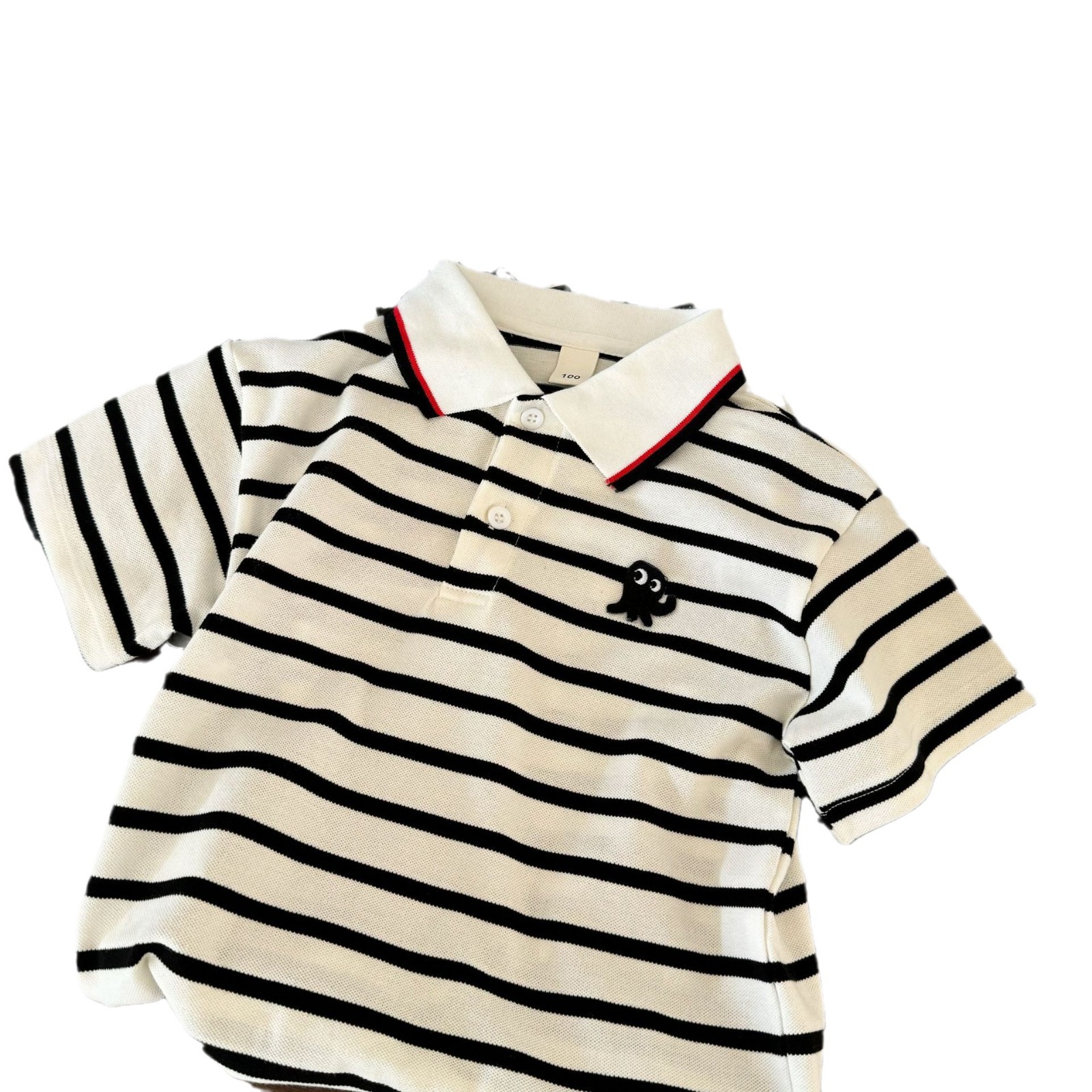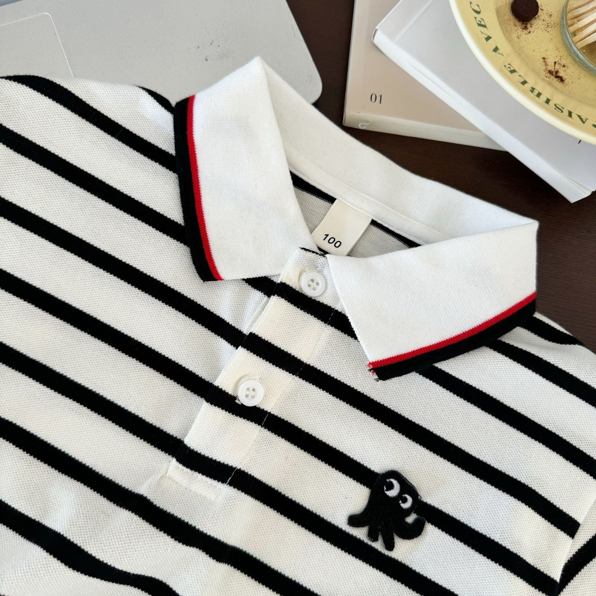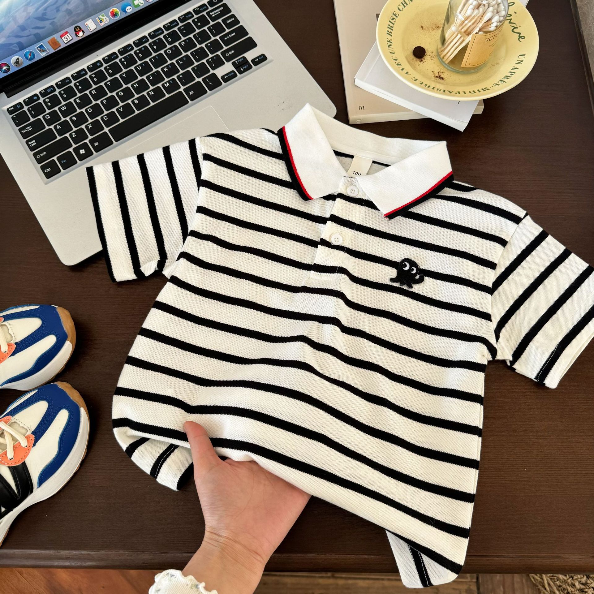 Children’s clothing 2024 Summer new children’s striped T-shirt fashion trendy boys’ polo shirt baby short sleeve t-shirt