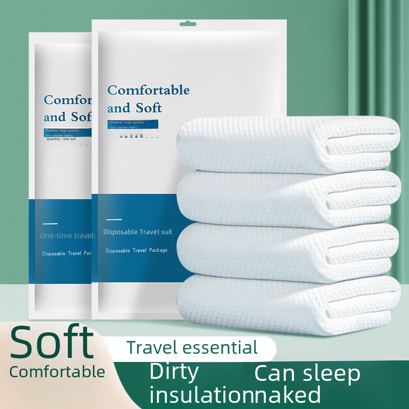 | nameOriginal | Travel thickened disposable bed sheet double business trip dirty disposable quilt cover pillowcase towel bath towel four-piece set |