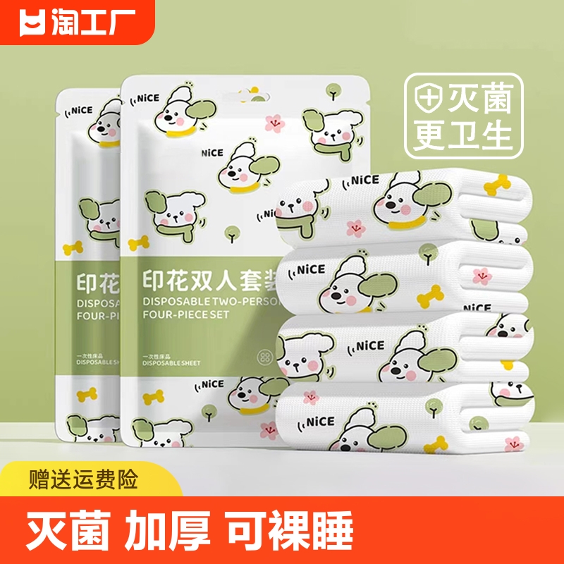 Travel Disposable Bed Sheet Quilt Cover Pillowcase Autumn and Winter Four-piece Set Hotel Bed Three-piece Set Thickened Double Travel
