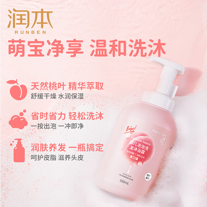 | nameOriginal | Runben Peach Leaf Bubble Body Soap Shampoo 2-in -1 Baby Newborn Baby Care Products Genuine Bubble Bath |