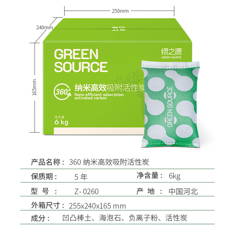 | nameOriginal | Green Source 360 Nano High Efficiency Adsorption Activated Carbon Indoor Decoration New House in addition to Formaldehyde Bamboo Charcoal Package Foundation |