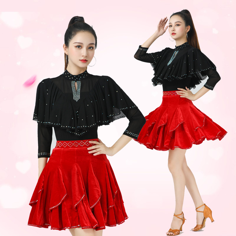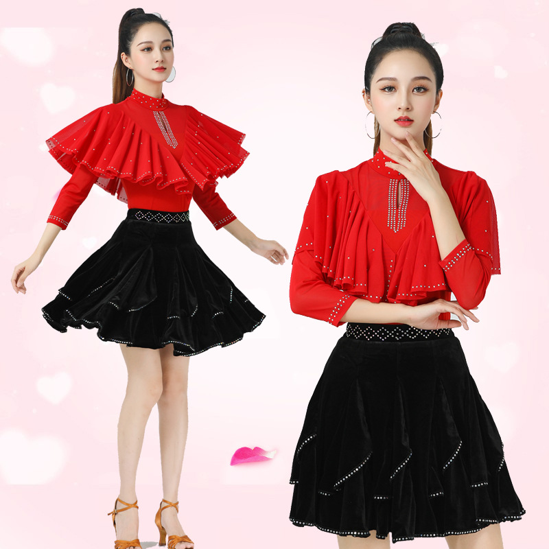 | nameOriginal | Square dance modern dance top new women's diamond-embedded stand collar 9-point sleeve clothes elegant dance Latin dance clothes gitba clothes |