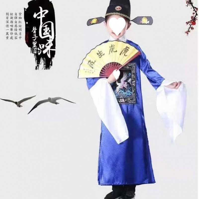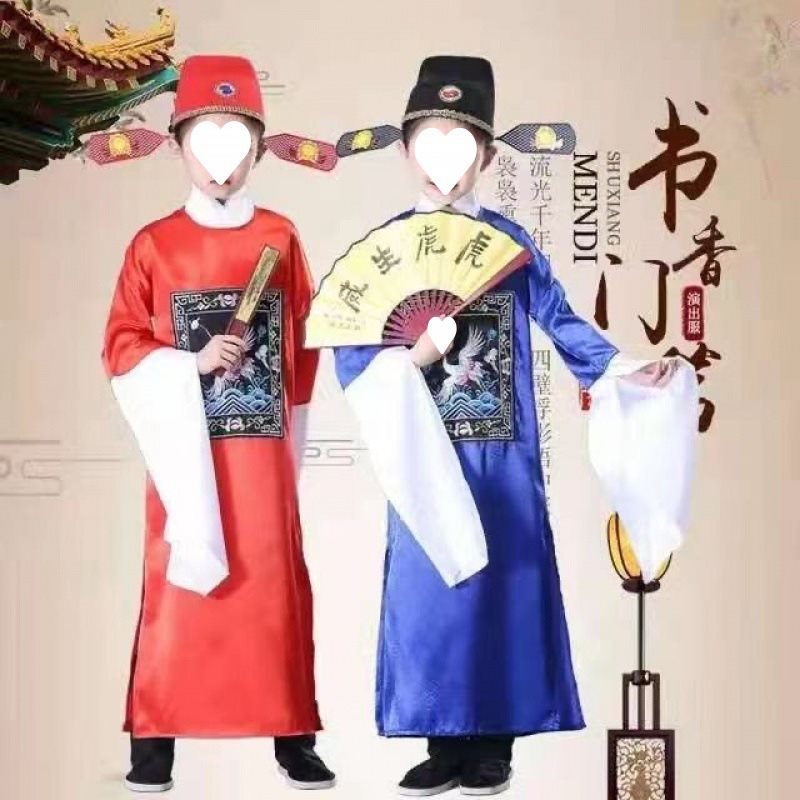 | nameOriginal | Costume ancient costume Huangmei costume children's children's horse performance costume suit Sesame official opera Beijing opera costume |