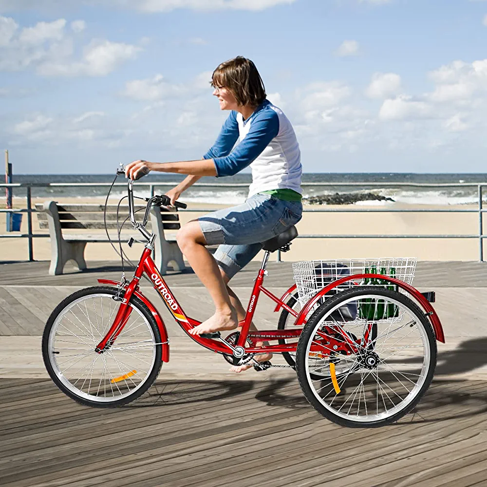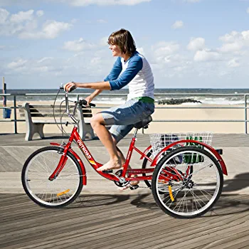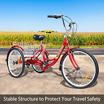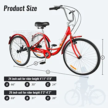 This product features a high carbon steel frame and comes with a choice of 24 or 26-inch full black tires, both of which are mounted on an aluminum alloy double wall spoke rim. The bike is equipped with a 1*7 shifter and weighs 61.7 lbs. The 24-inch model is suitable for individuals between 4’11” and 5’10”, while the 26-inch model is ideal for those between 5’3″ and 6’2″. The bike can support a maximum weight capacity of 450 lbs.