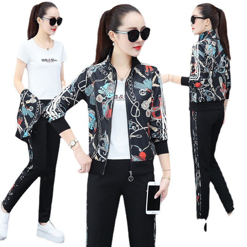 | nameOriginal | Fashion sportswear suit women's spring and autumn 2024 New printed long sleeve stand collar casual sweater three-piece suit fashion |